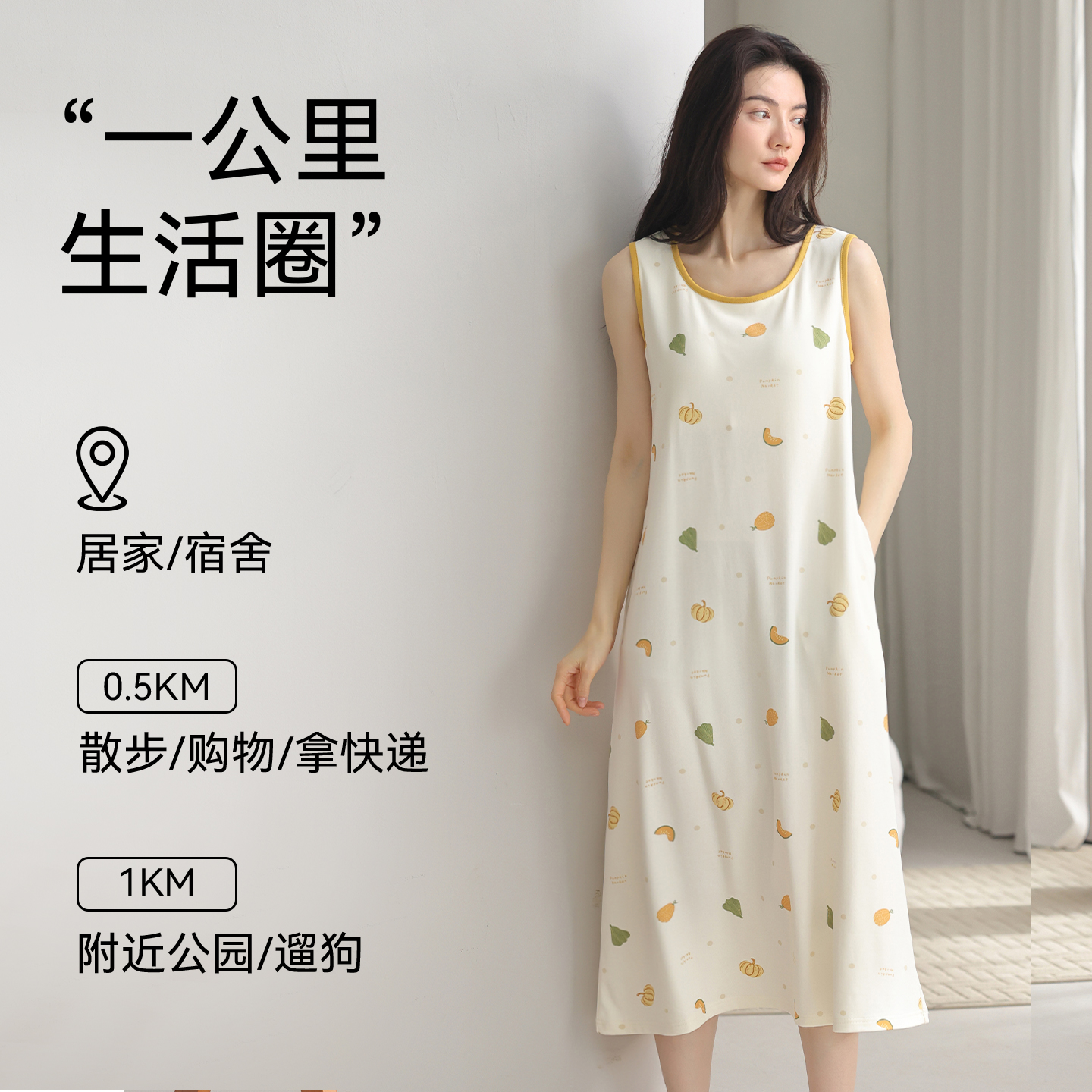 蕉内棉棉300Sleep女款 女士吊带睡裙 睡衣带杯带胸垫莫代尔冰丝短袖