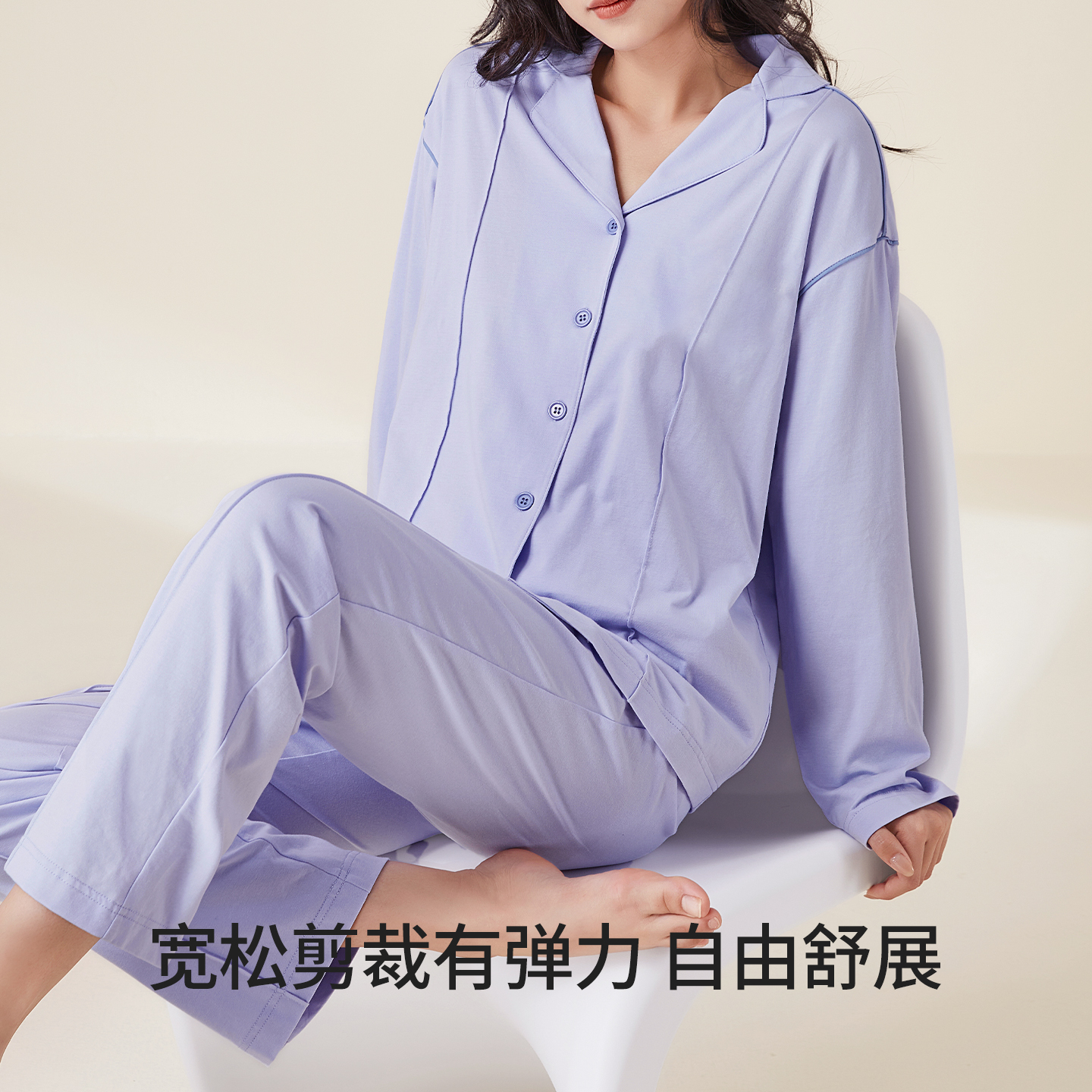 茜施尔新款 简约大方高级感可外穿显瘦睡衣女S 春秋棉质家居服套装