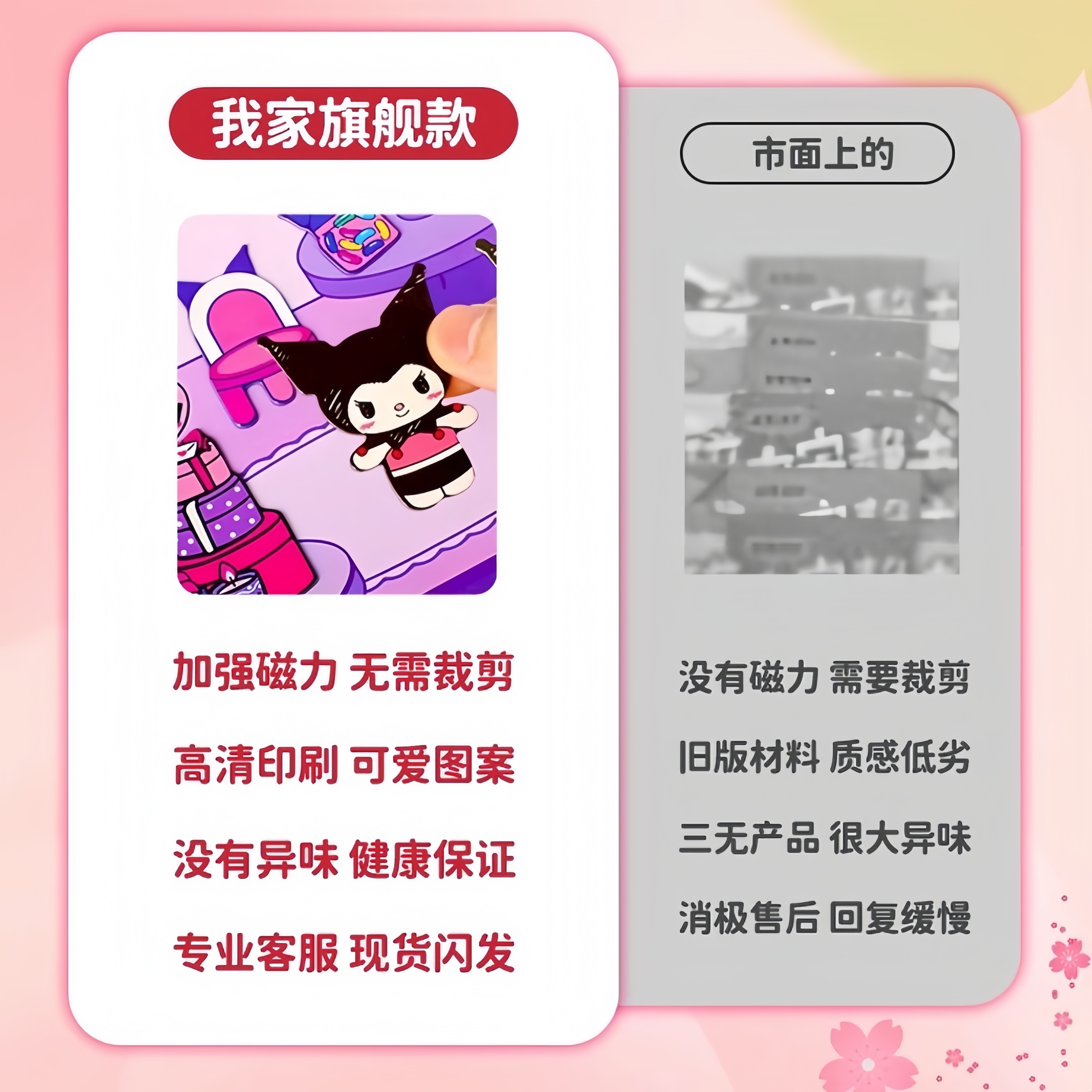 迷你磁力安静书新款 书儿童diy玩具库洛米磁力贴磁铁 女孩磁吸换装