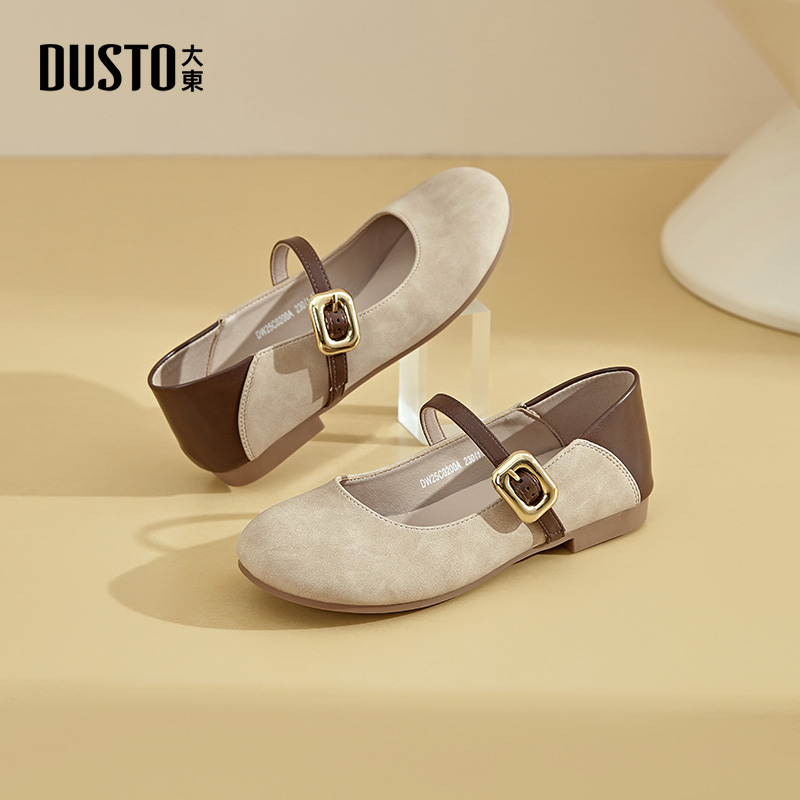 子E1V1DCQ5 蛋卷平底浅口单鞋 百丽小金豆羊皮芭蕾玛丽珍鞋 女新款