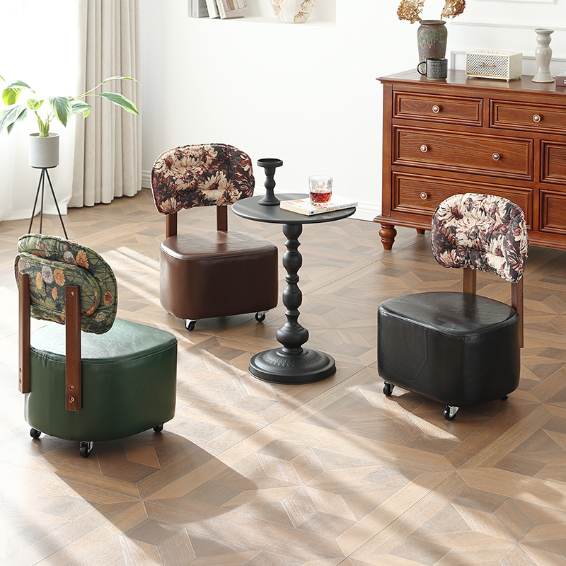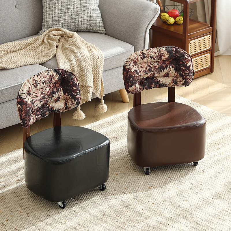 万向轮小凳子家用滑轮矮凳换鞋 凳可移动靠背小椅子实木板凳溜溜椅