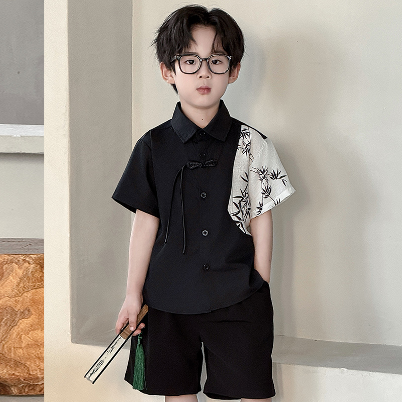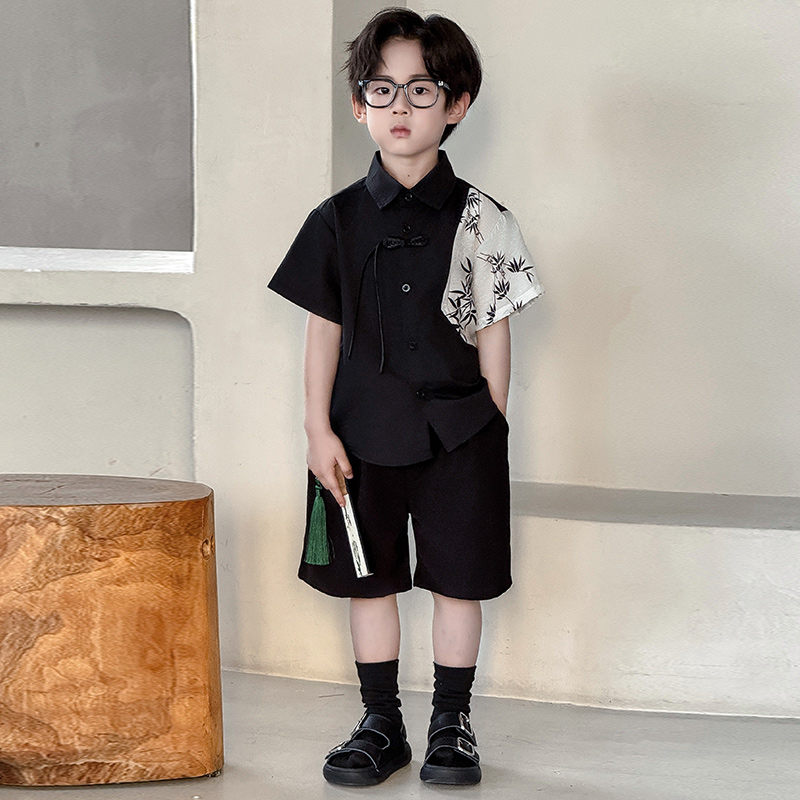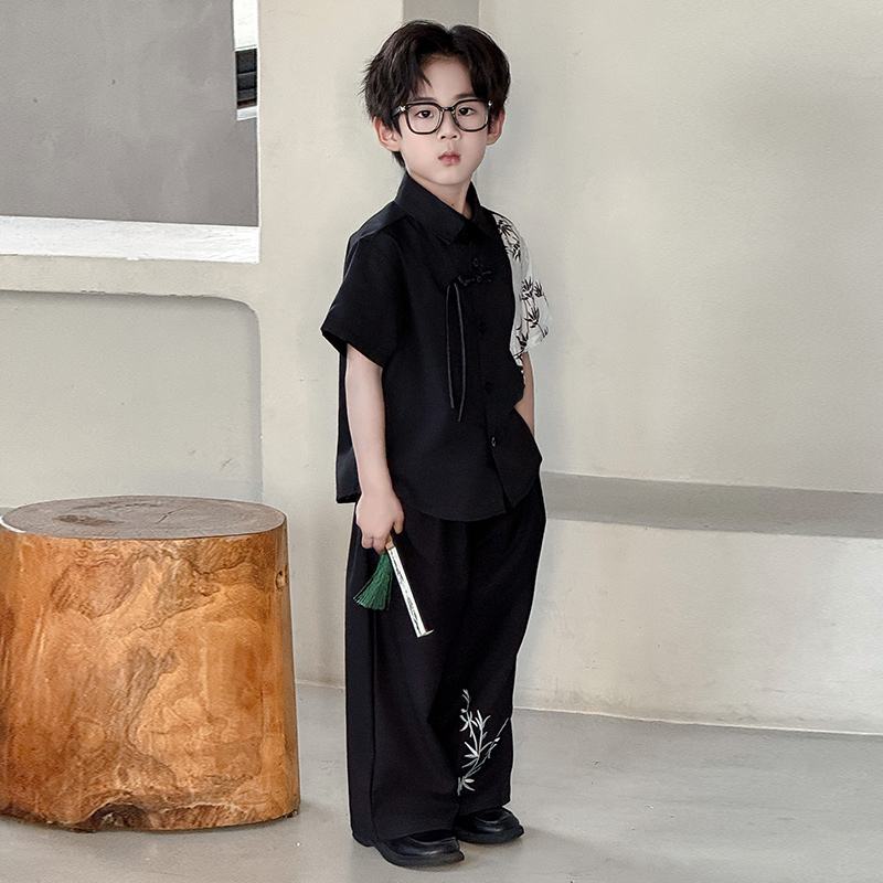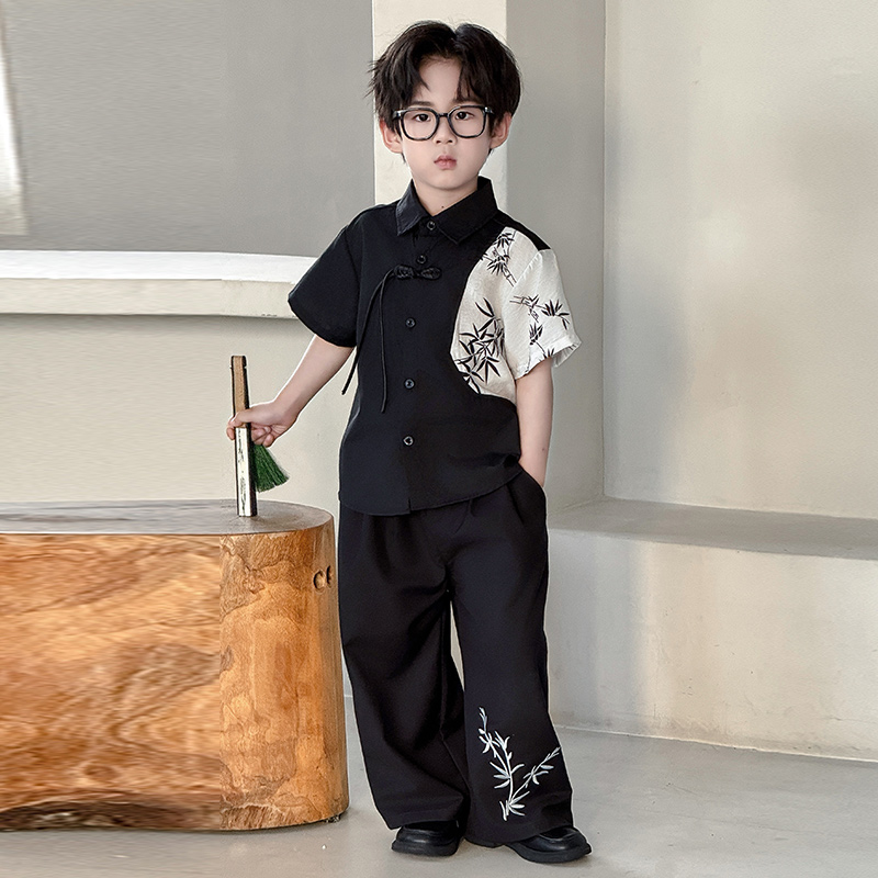 儿童新中式 汉服男童帅气国风两件套男孩中秋节主持拍照表演服套装