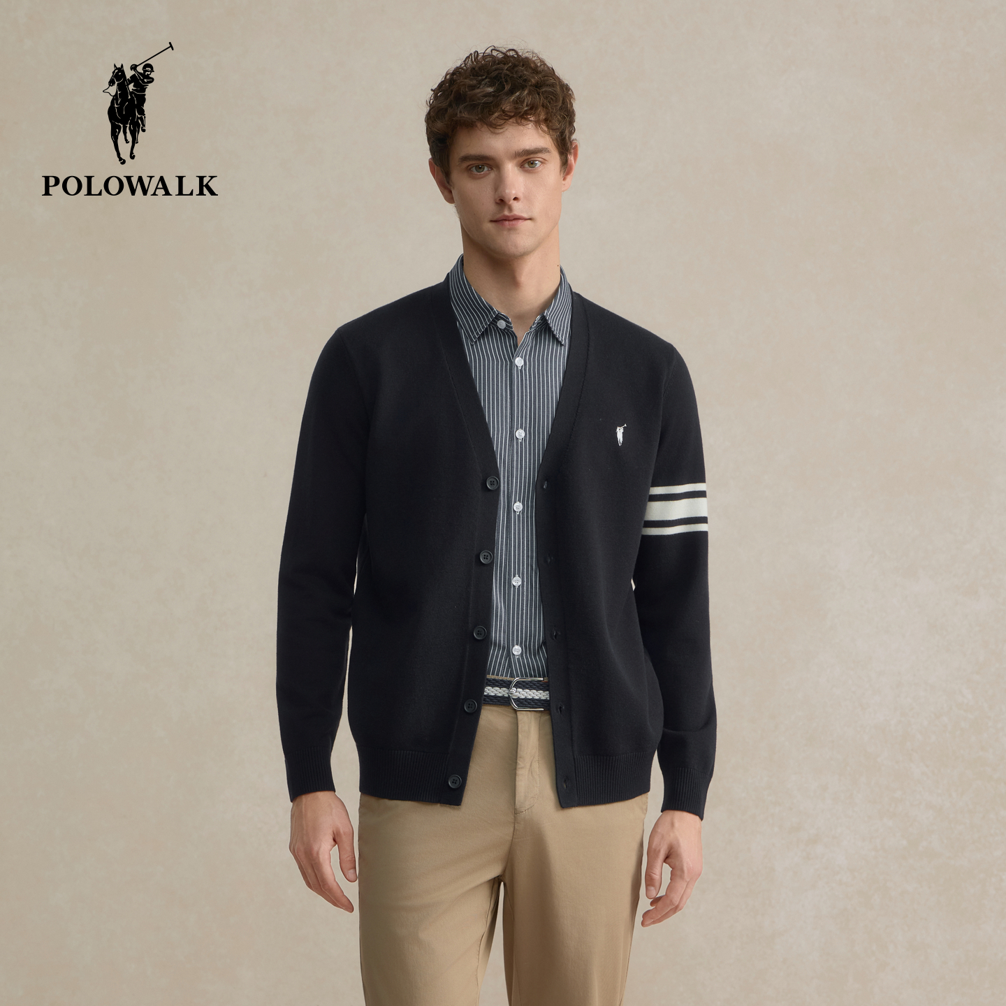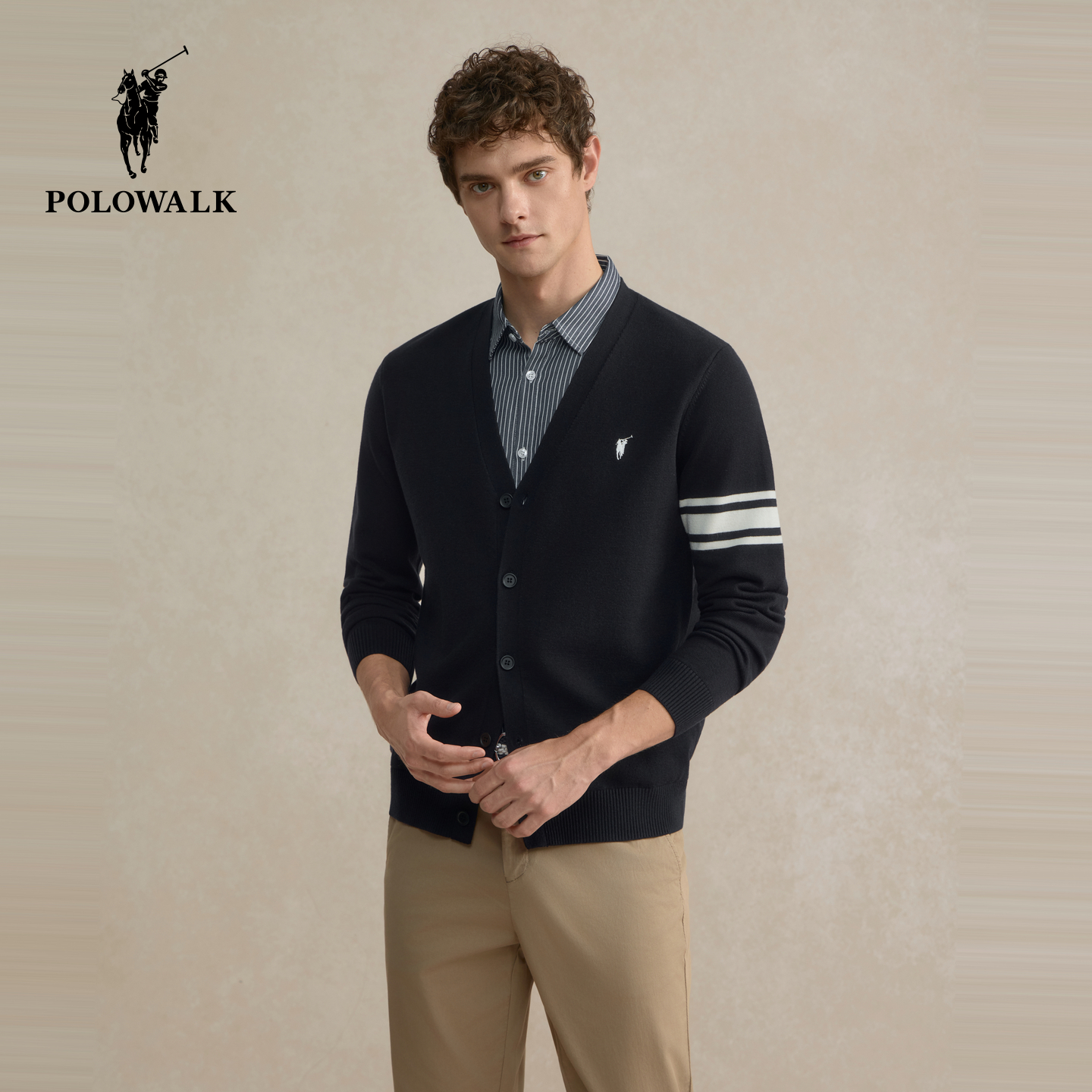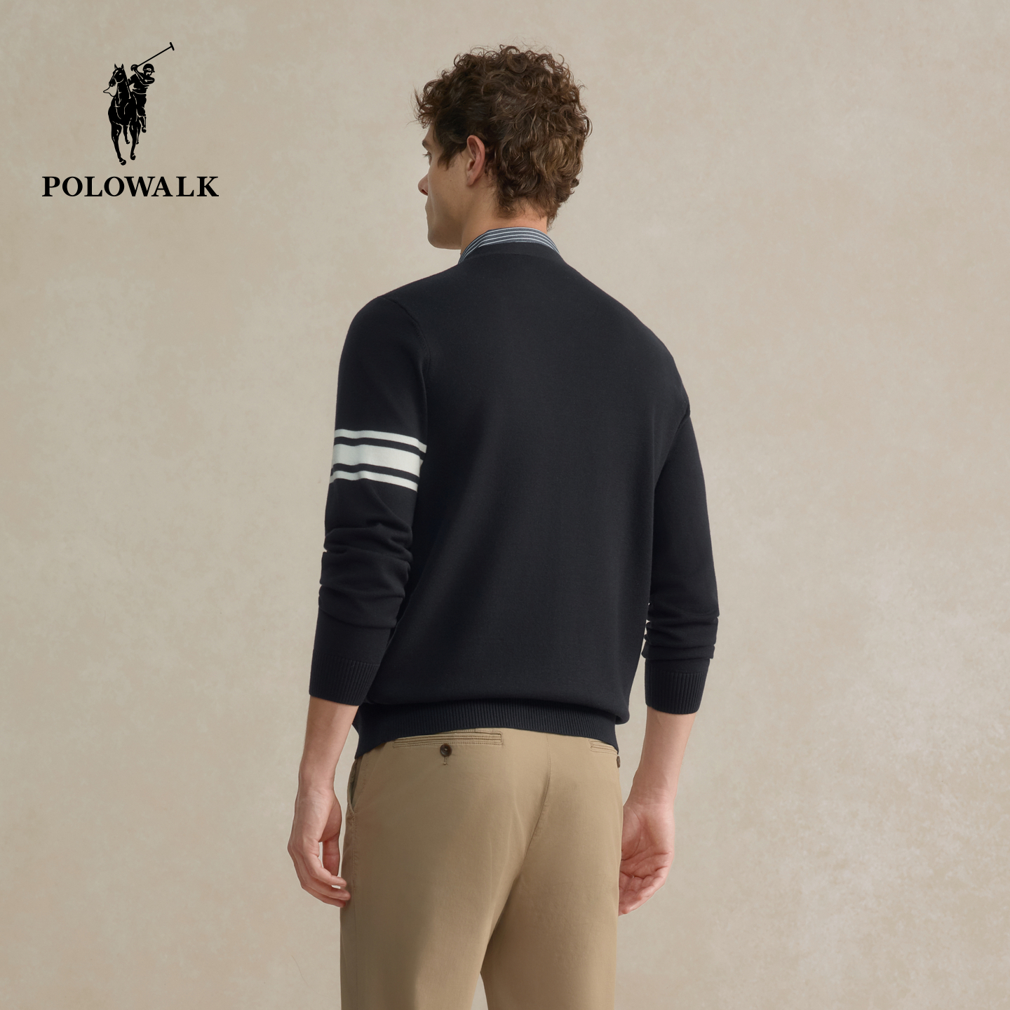 含绵羊毛 新品 POLOWALK针织衫 2025秋季 韩系假两件V领外套 男士