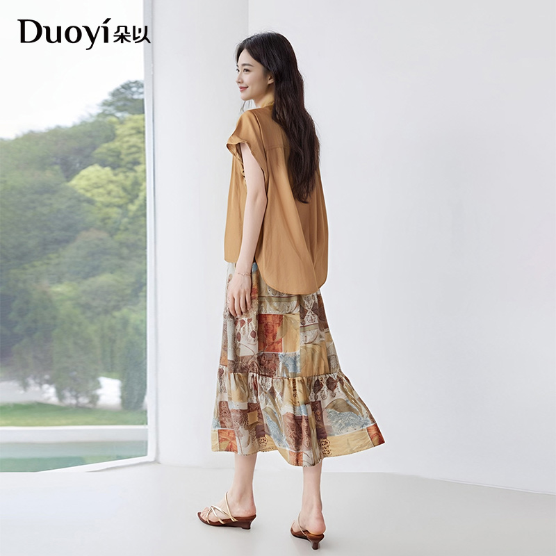 异域风印花半身裙套装 波西米亚民族风刺绣衬衫 新款 朵以2025秋季