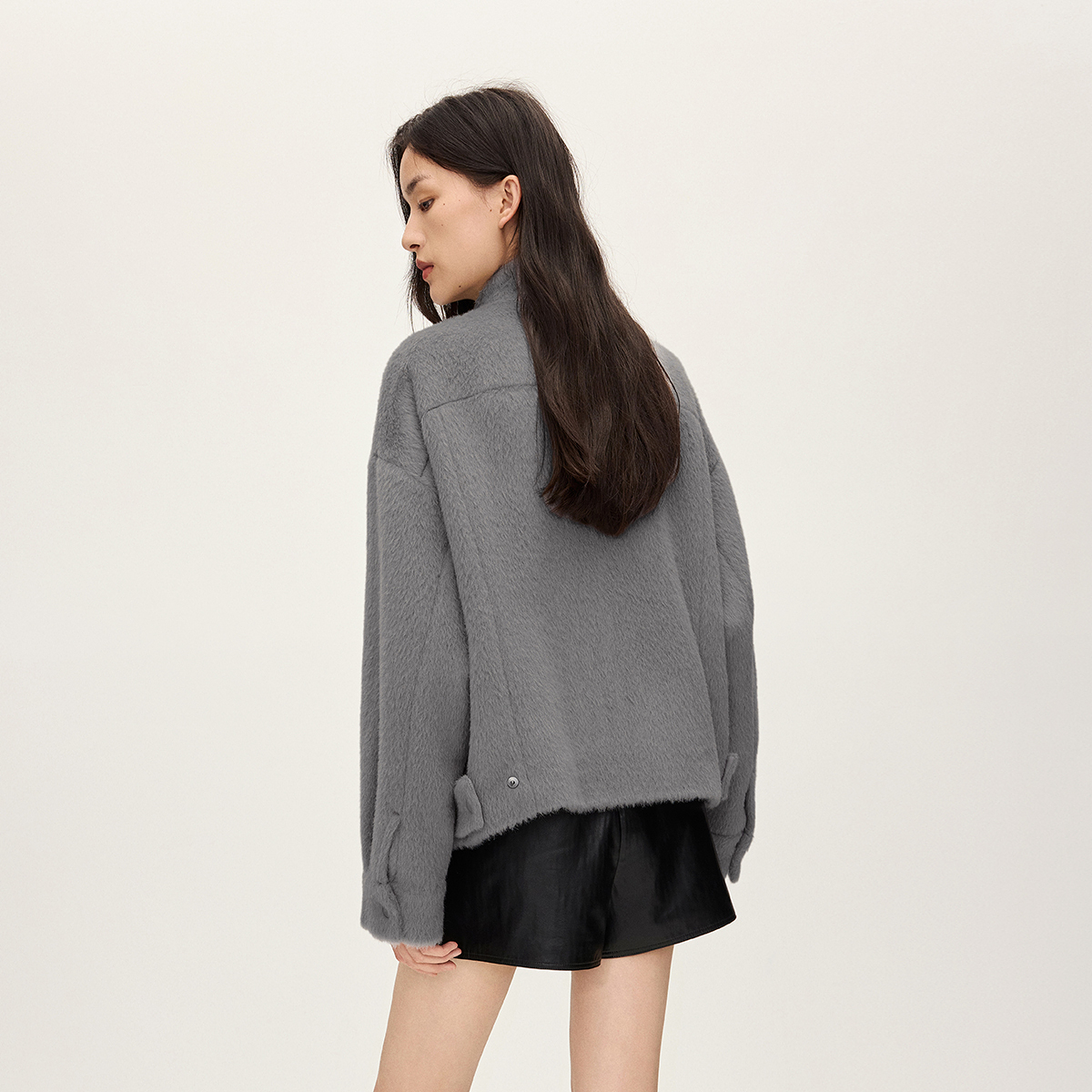 毛呢外套女2025秋冬款 复古翻领夹克棒球服 宽松百搭设计感小众美式