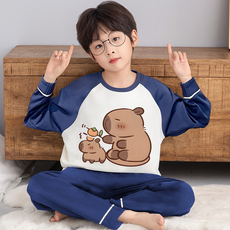 中大童卡皮巴拉家居服男宝宝秋装 套装 儿童睡衣男童春秋季 纯棉长袖