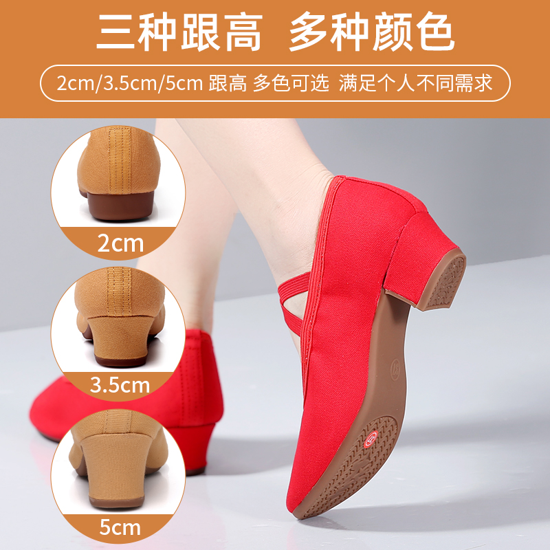 帆布鞋 室外驼色舞蹈鞋 软底广场舞女鞋 新款 高跟 女成人不累脚跳舞鞋
