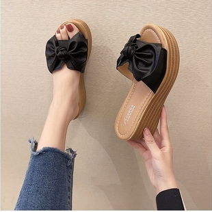 超高跟鞋 厚底凉拖鞋 百搭花朵仙女一字拖鞋 2025年新款 子增高 女夏季