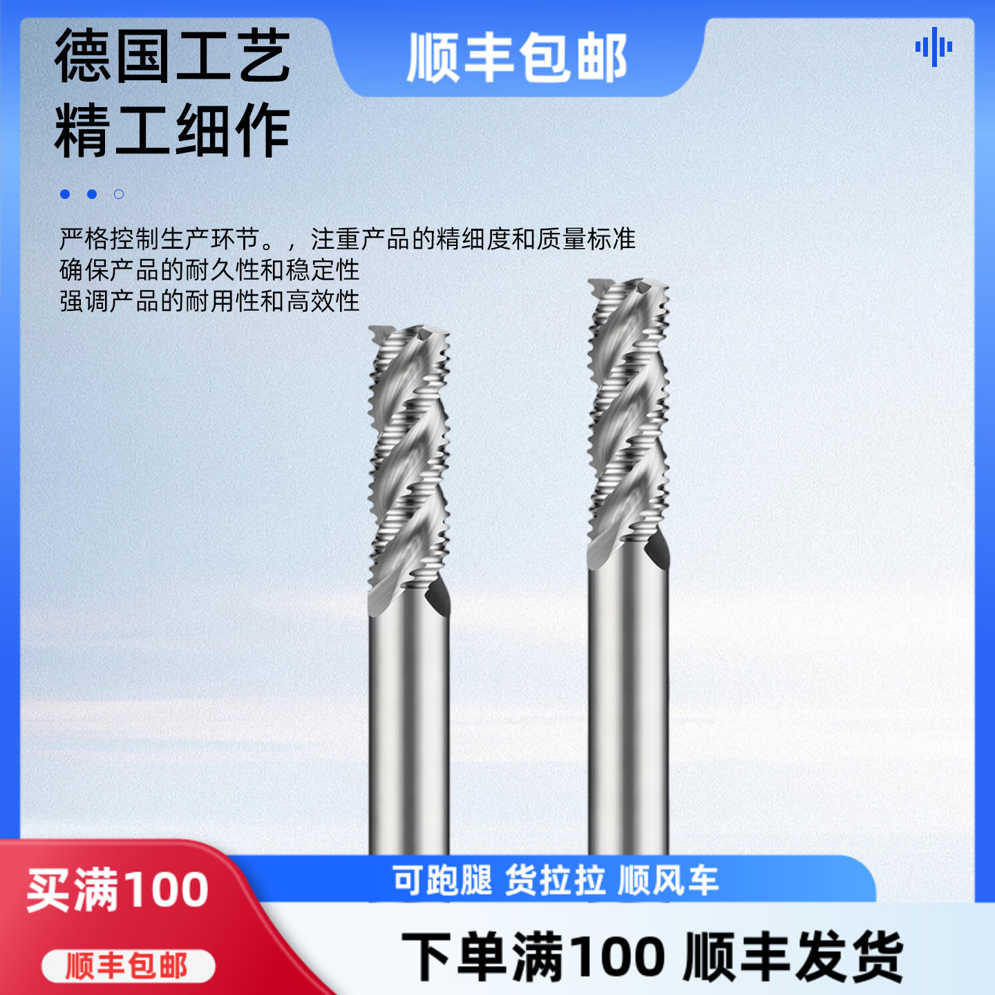 三刃铝用粗皮铣刀高效开粗全磨波刃立铣刀铣铝专用玉米粗皮刀60度