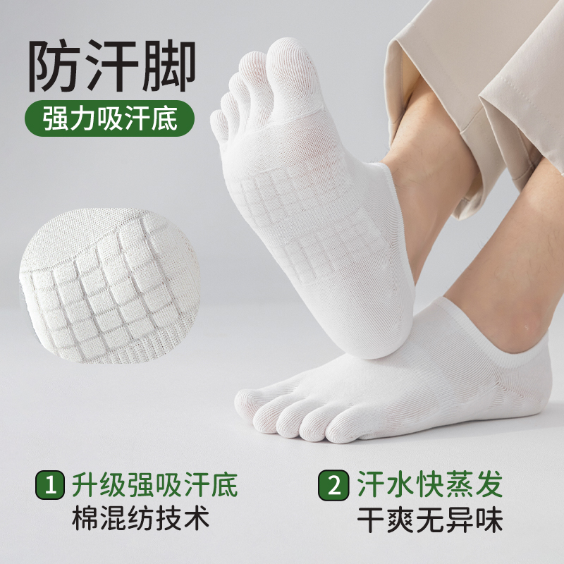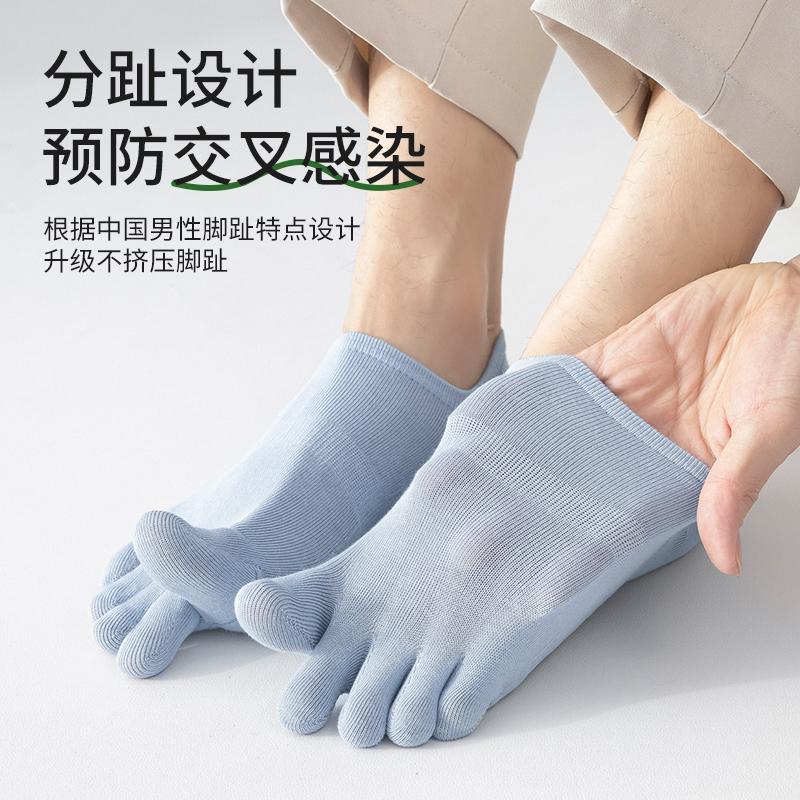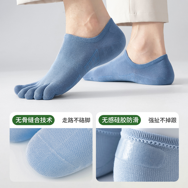 五指袜子男夏薄款 船袜纯棉10A抗菌无骨防臭吸汗浅口不掉跟分趾袜