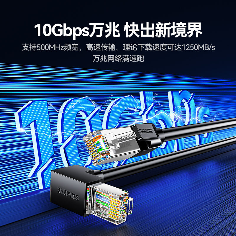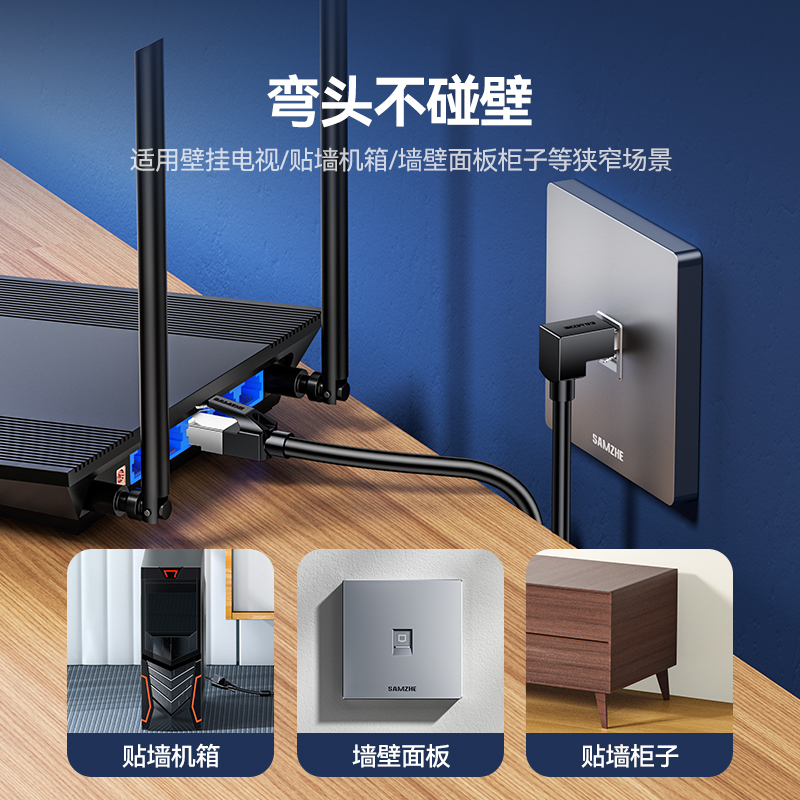 山泽网线千兆家用弯头90度直角超6六类万兆电脑路由器网络连接线