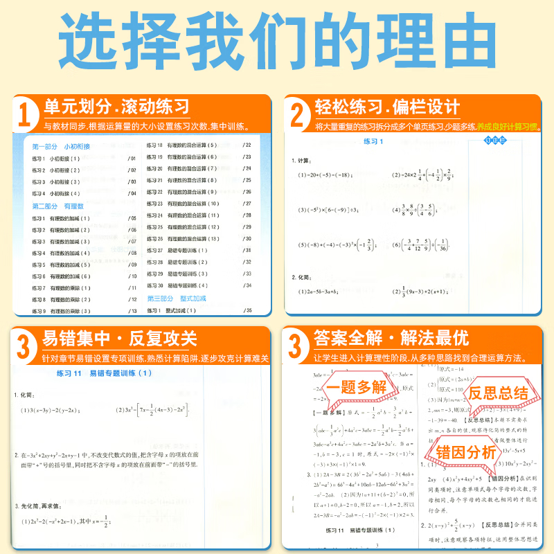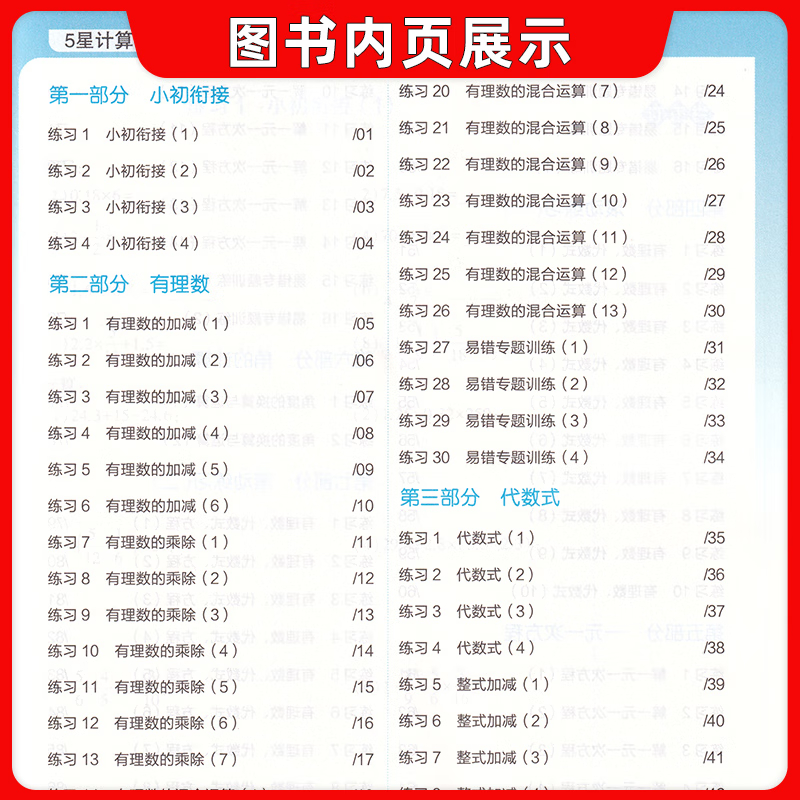 同步强化思维练习题初中一二运算能手口算高手天天练zj 苏教北师版 2025版 计算达人七年级八上下册学霸五星数学计算题专项训练人教版