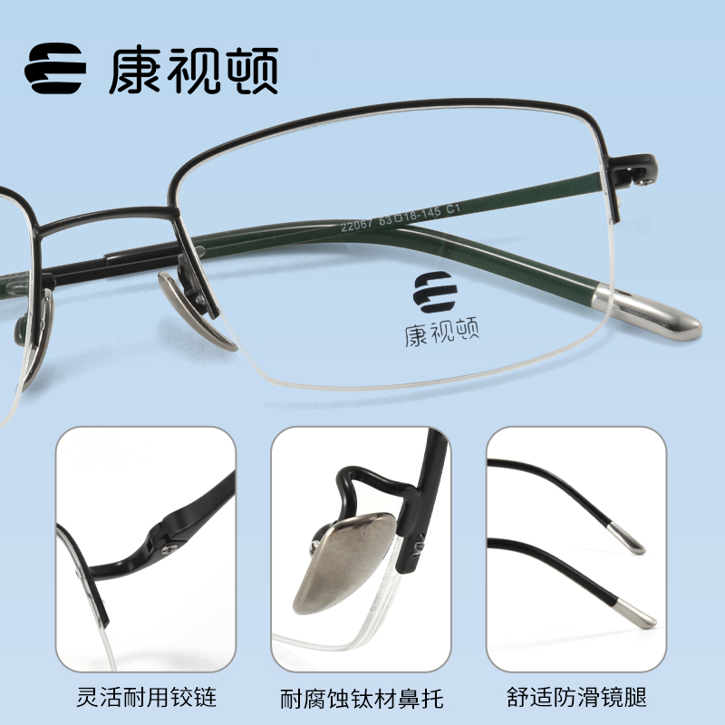 康视顿近视眼镜男款 休闲22067 商务可配度数定制散光超轻钛材时尚