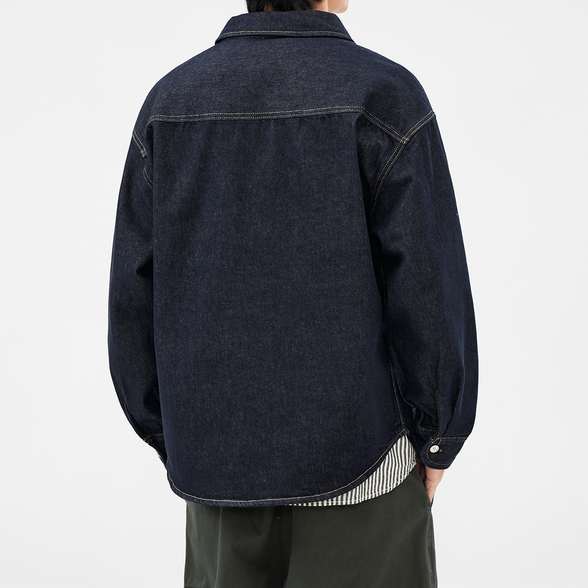 男2025秋款 衬衫 宽松休闲上衣复古水洗牛仔外套 森马长袖 森柔牛仔