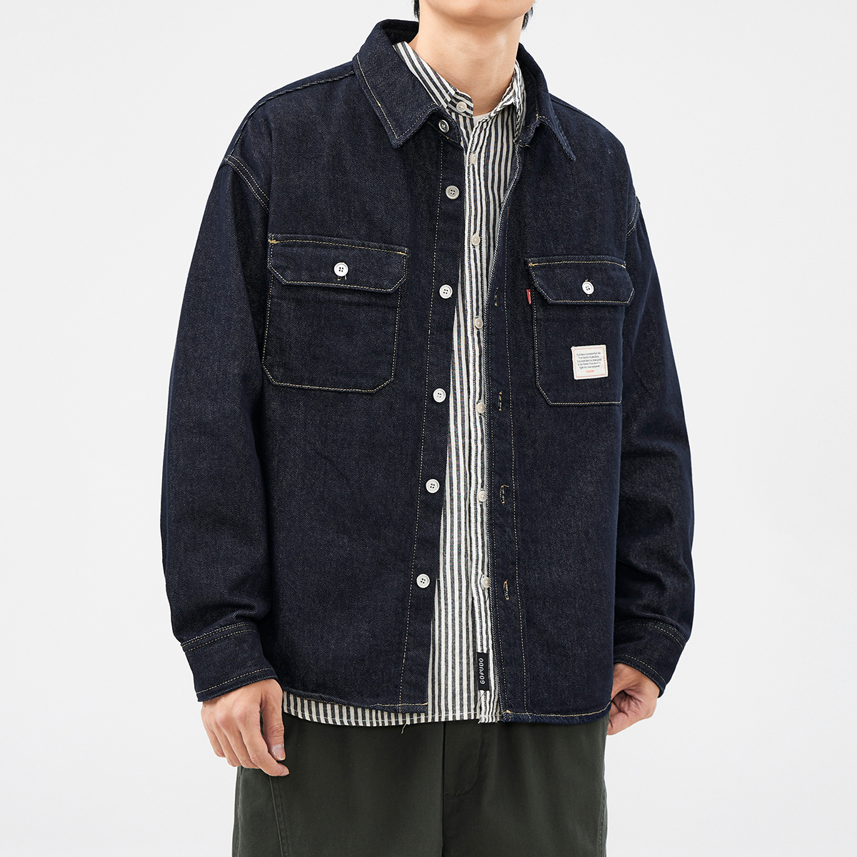 男复古水洗牛仔外套秋季 衬衫 宽松上衣内搭外穿 森马长袖 森柔牛仔