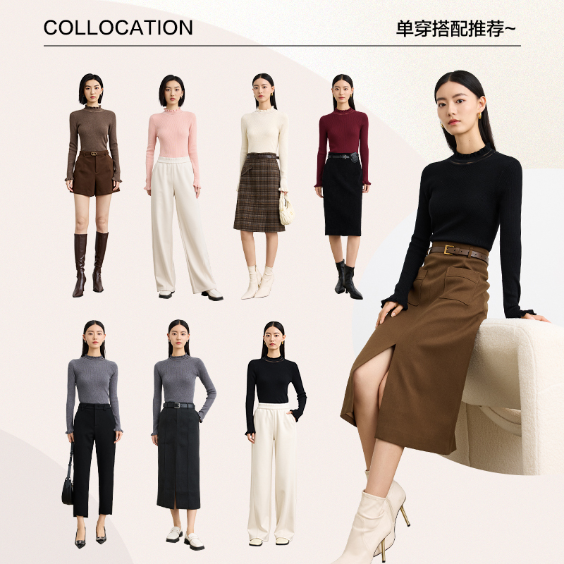 太平鸟全羊毛无缝一体打底针织衫 衣橱直播间 所有女生
