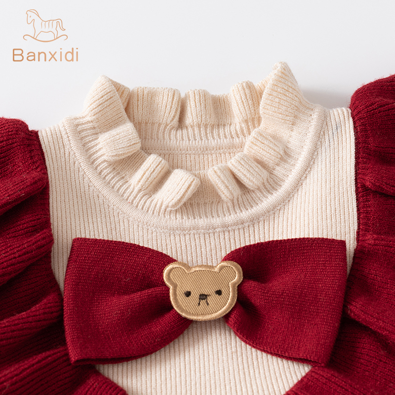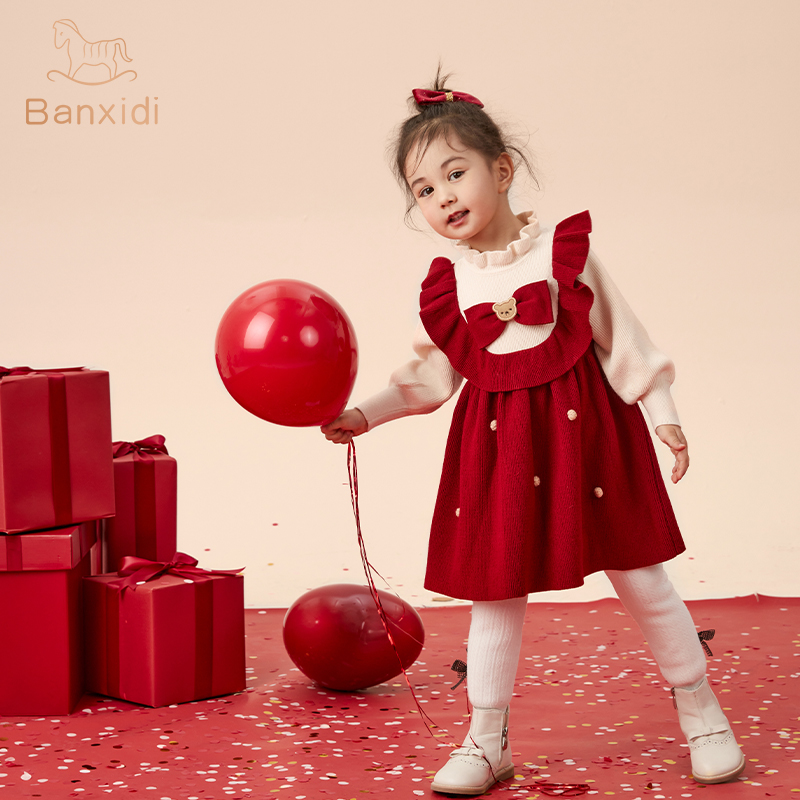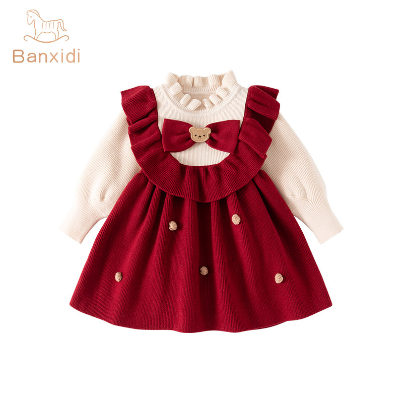 毛衣裙黑色裙子潮o8 女气质长款 唐狮连衣裙女圆领假两件针织春季 款