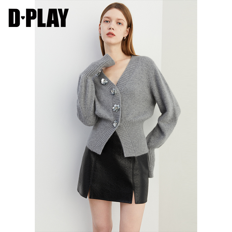 天丝羊驼毛简约刺绣圆领毛衣针织开衫 BANANA CICI2025年秋冬新款