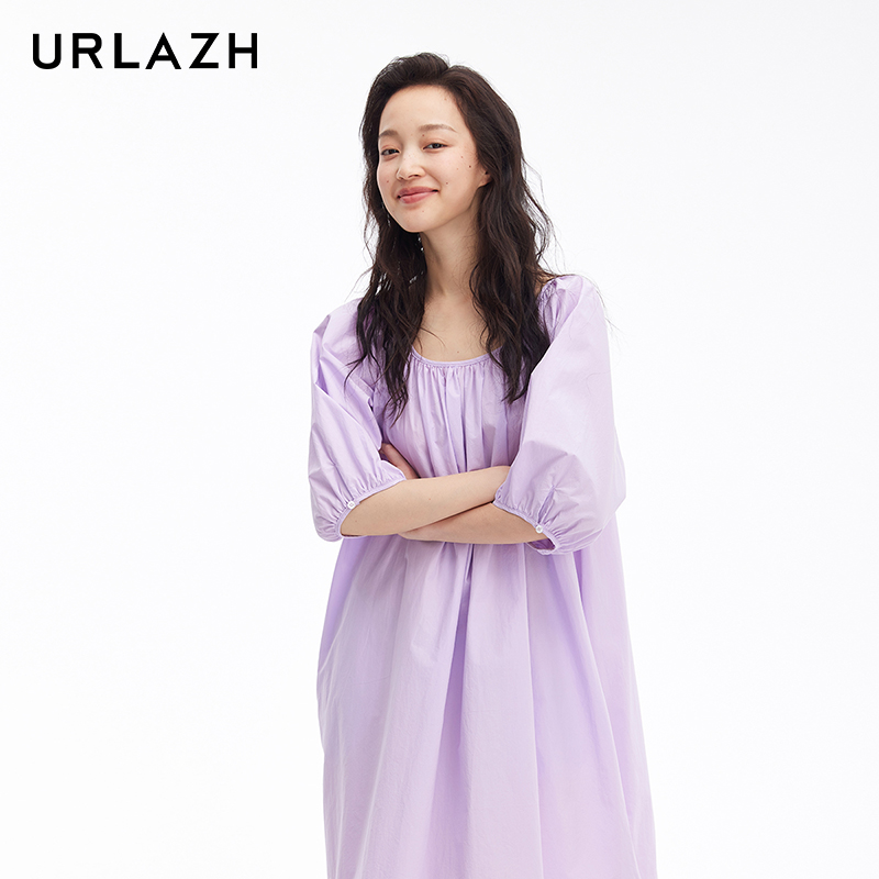 优雅气质短袖 纯棉度假风宽松泡泡袖 连衣裙 新款 URLAZH有兰夏季