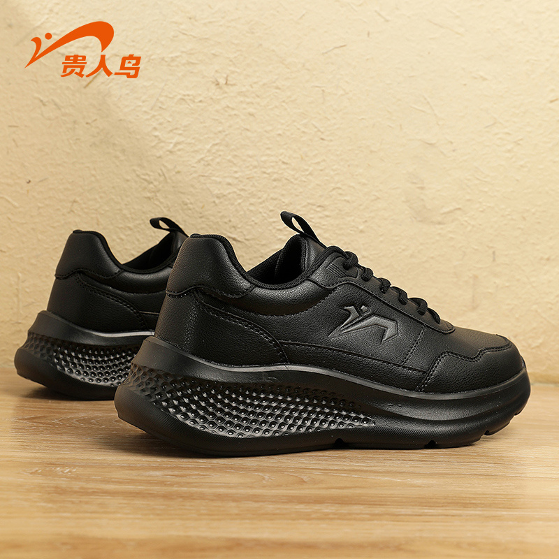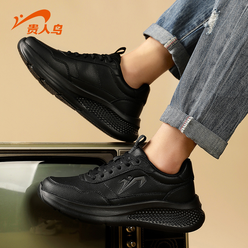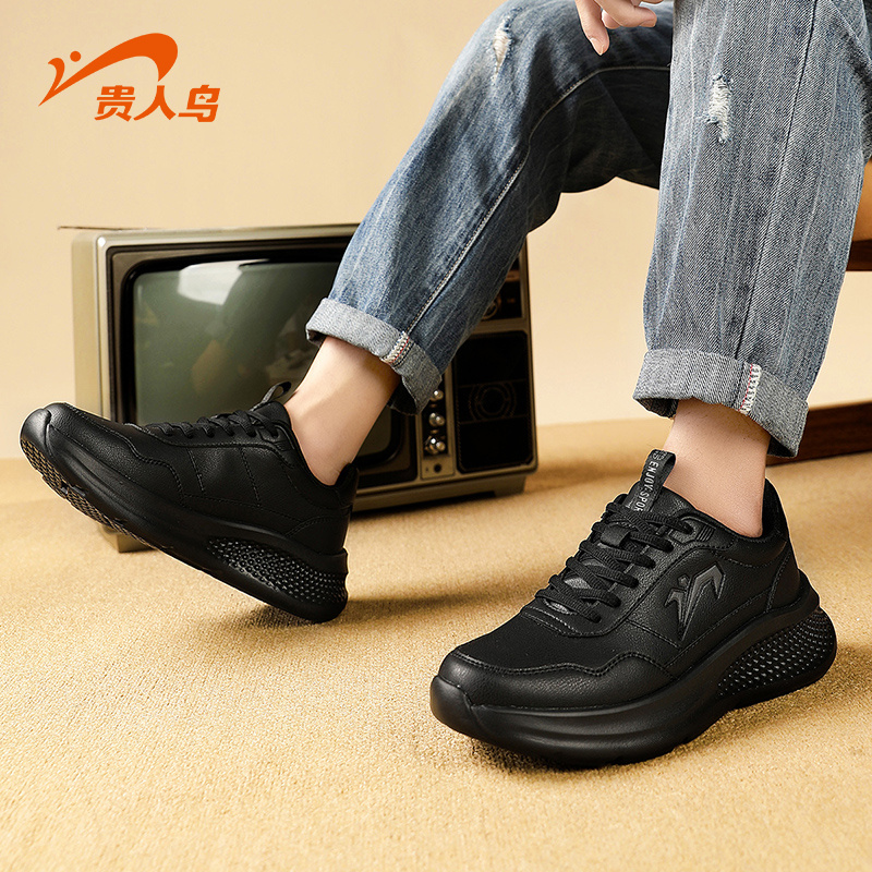 2025新款 皮面运动鞋 软底防水跑步休闲鞋 黑色秋季 子男正品 特步男鞋