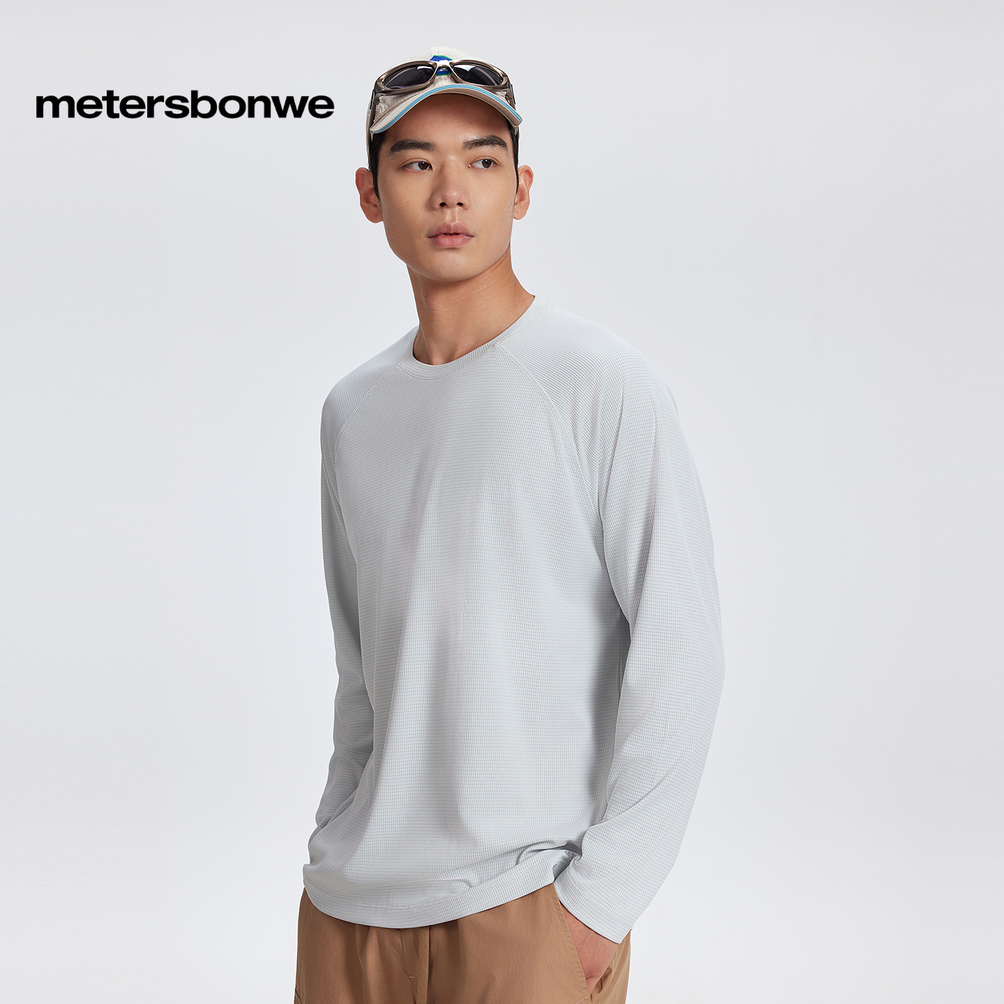 上衣 长袖 美特斯邦威舒适T恤男秋春新款 情侣户外运动圆领插肩男士