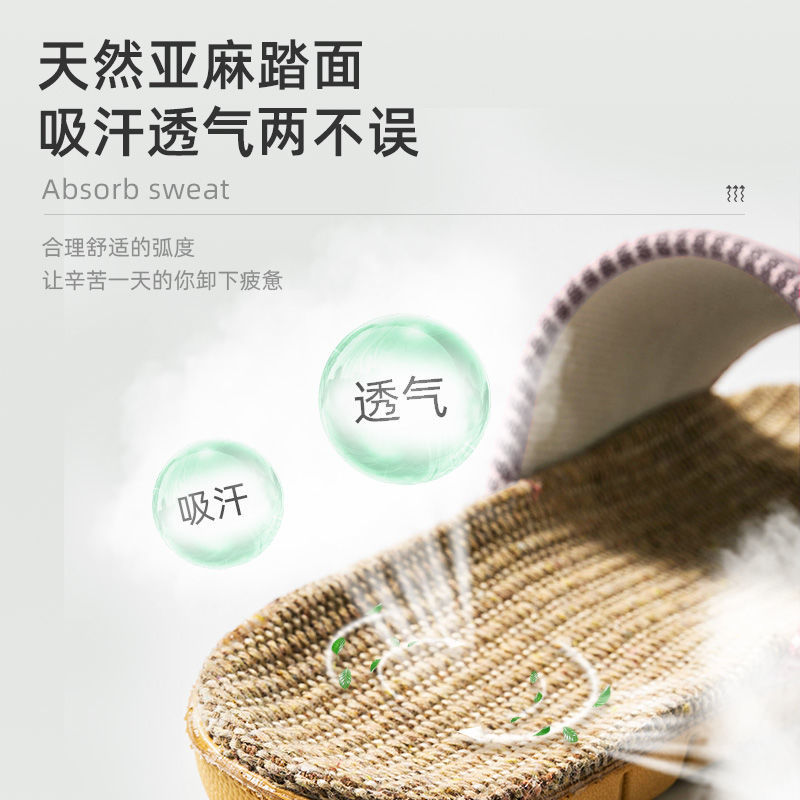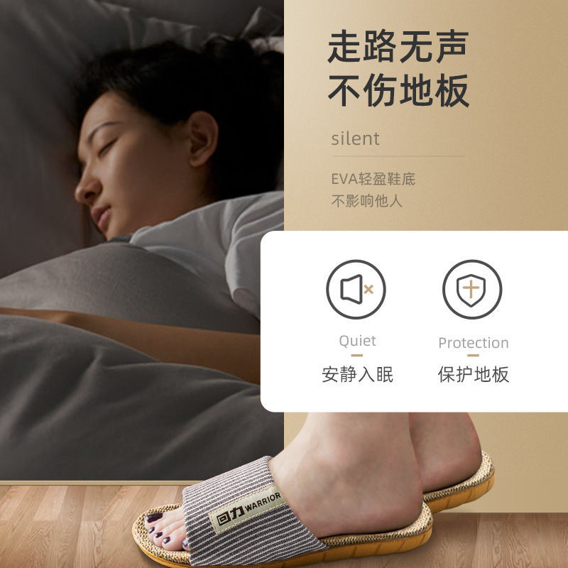 办公室静音女凉拖鞋 室内止滑抗磨四季 男春夏居家用鞋 回力亚麻拖鞋