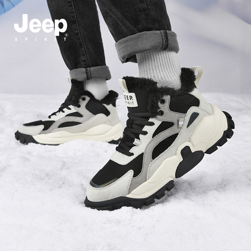 雪地靴男士 2024冬季 保暖高帮鞋 加绒男款 jeepspirit吉普男鞋 鞋 新款