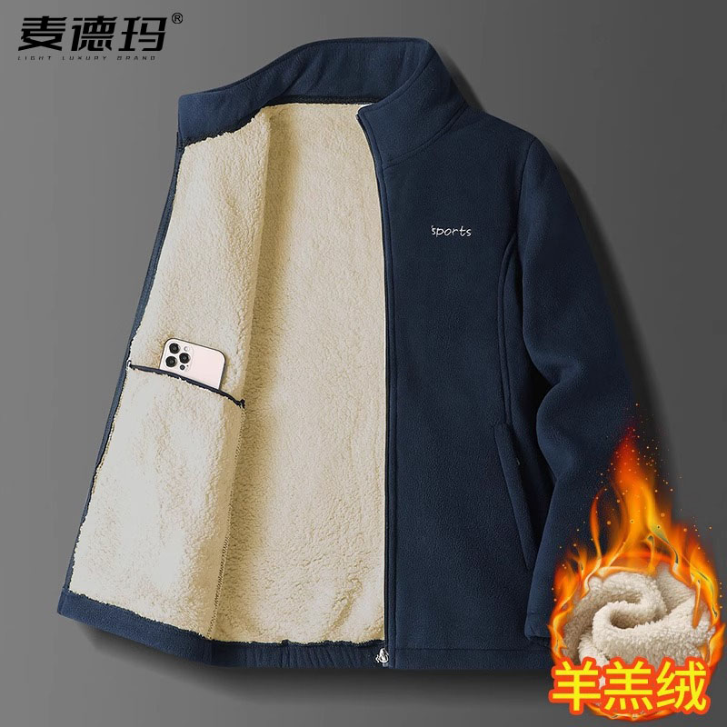 卫衣外套男中年户外休闲保暖外套 摇粒绒开衫 2025新款 春秋厚款