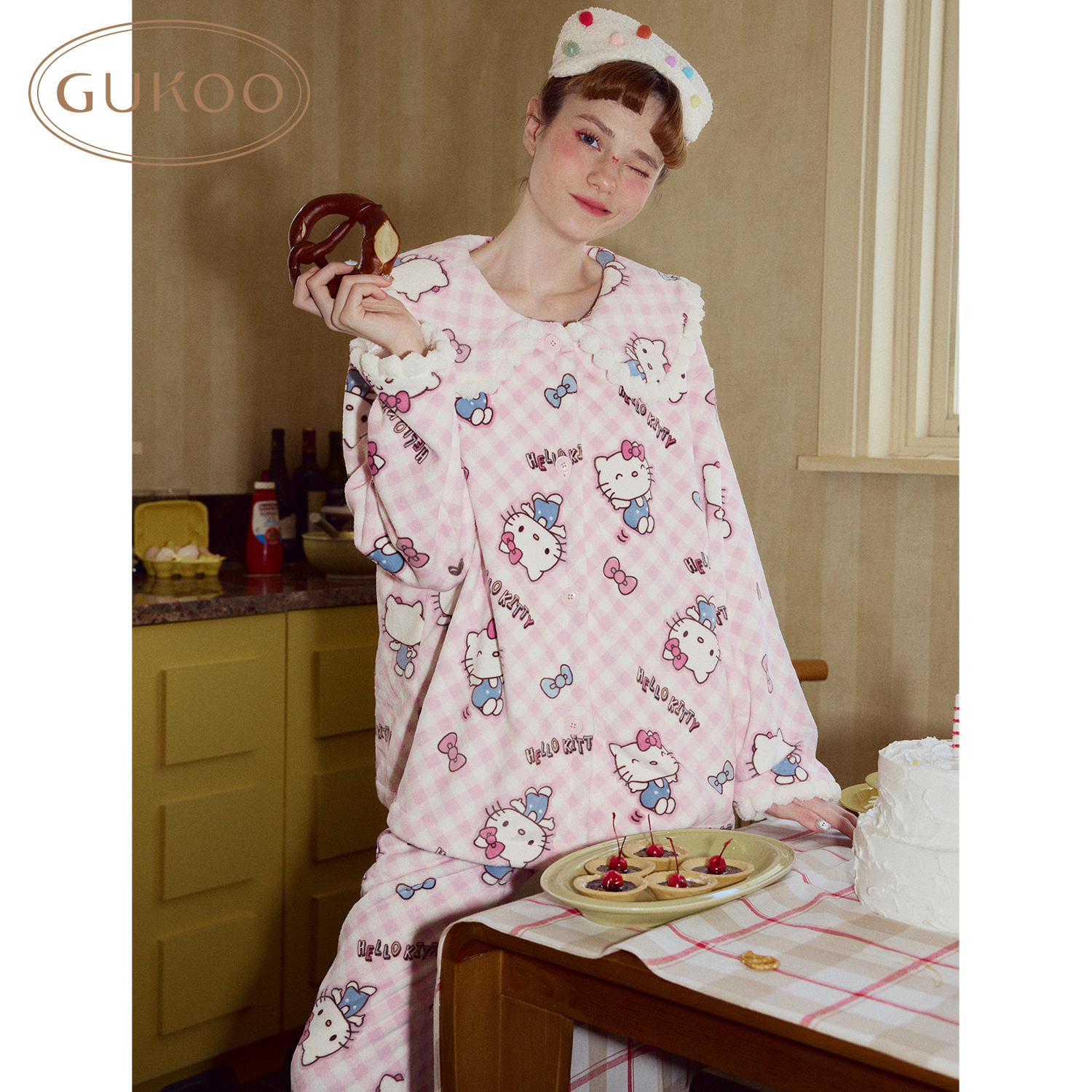 毛绒可爱女士家居服套装 HelloKitty联名新款 果壳睡衣冬季 Gukoo