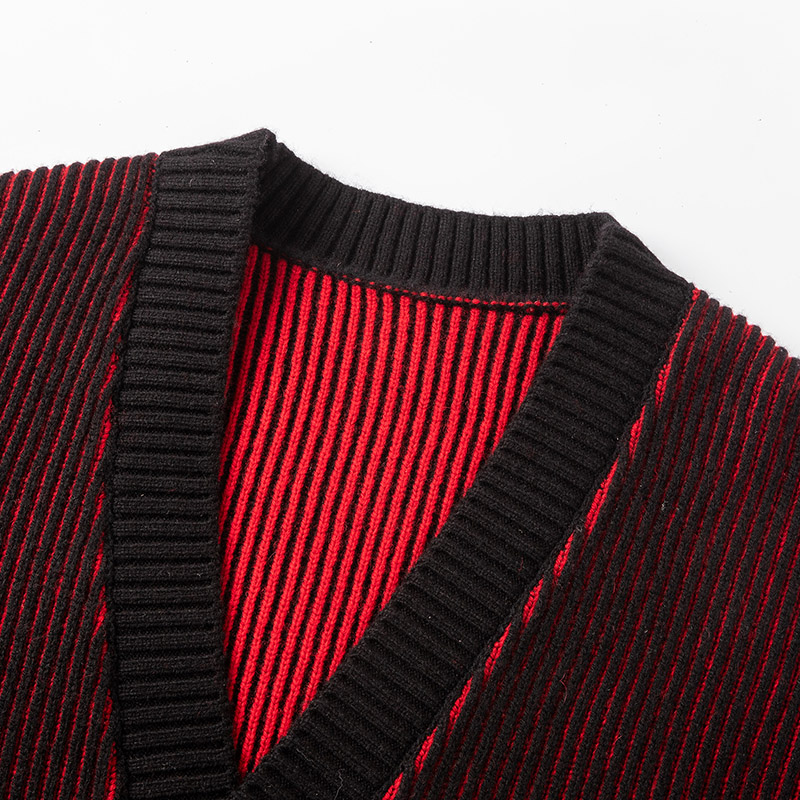 秋装 新款 青年复古慵懒V领条纹毛衣中国风开衫 男装 外套 100%羊毛衫