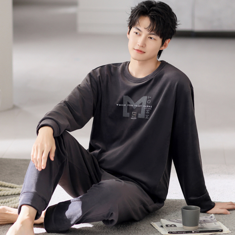 加厚加绒薄绒保暖海岛绒家居服春秋 薄绒秋冬季 珊瑚绒睡衣男士 新款