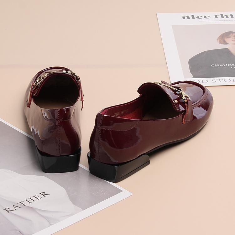 时尚 嘉俪多女欧美单鞋 春季 休闲2025新款 中口牛漆皮平跟圆头乐福鞋