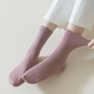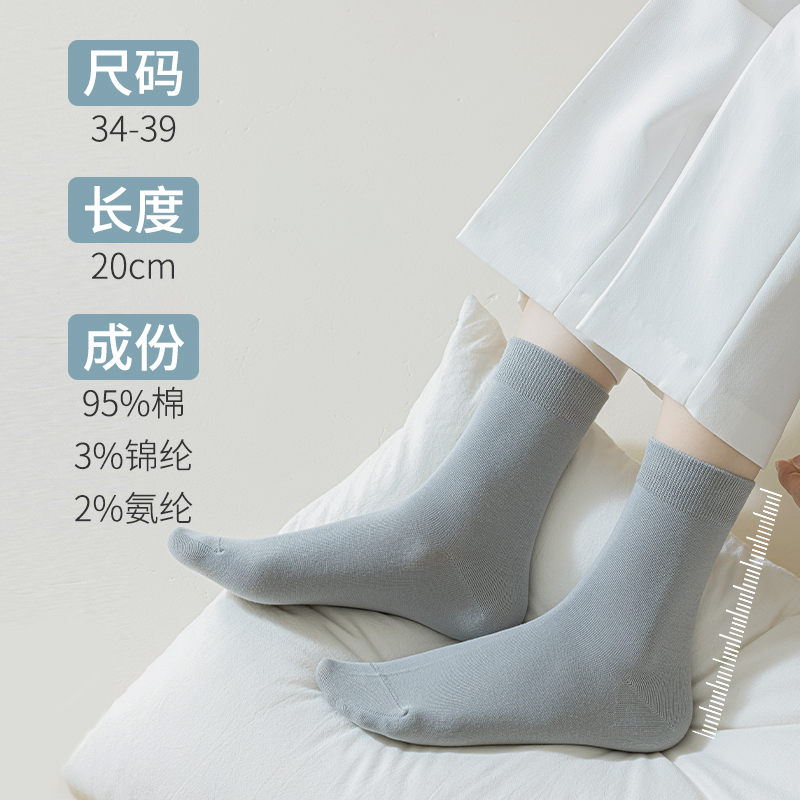基础款 不打滑舒适不臭脚 平板纯色95%含棉无骨袜子女中筒早秋薄款