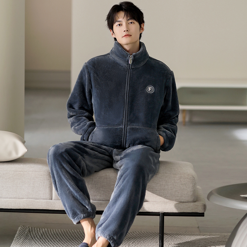 法兰绒大码 睡衣男士 秋冬款 珊瑚绒加厚加绒保暖男款 冬天家居服 冬季