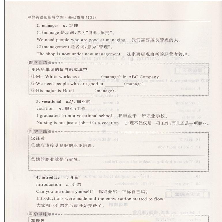 十四五 高教版 职高中等职业学校职教高考英语基础模块一教材同步导学练习册导与练 第三版 伴你成长在中职英语创新导学案基础模块1