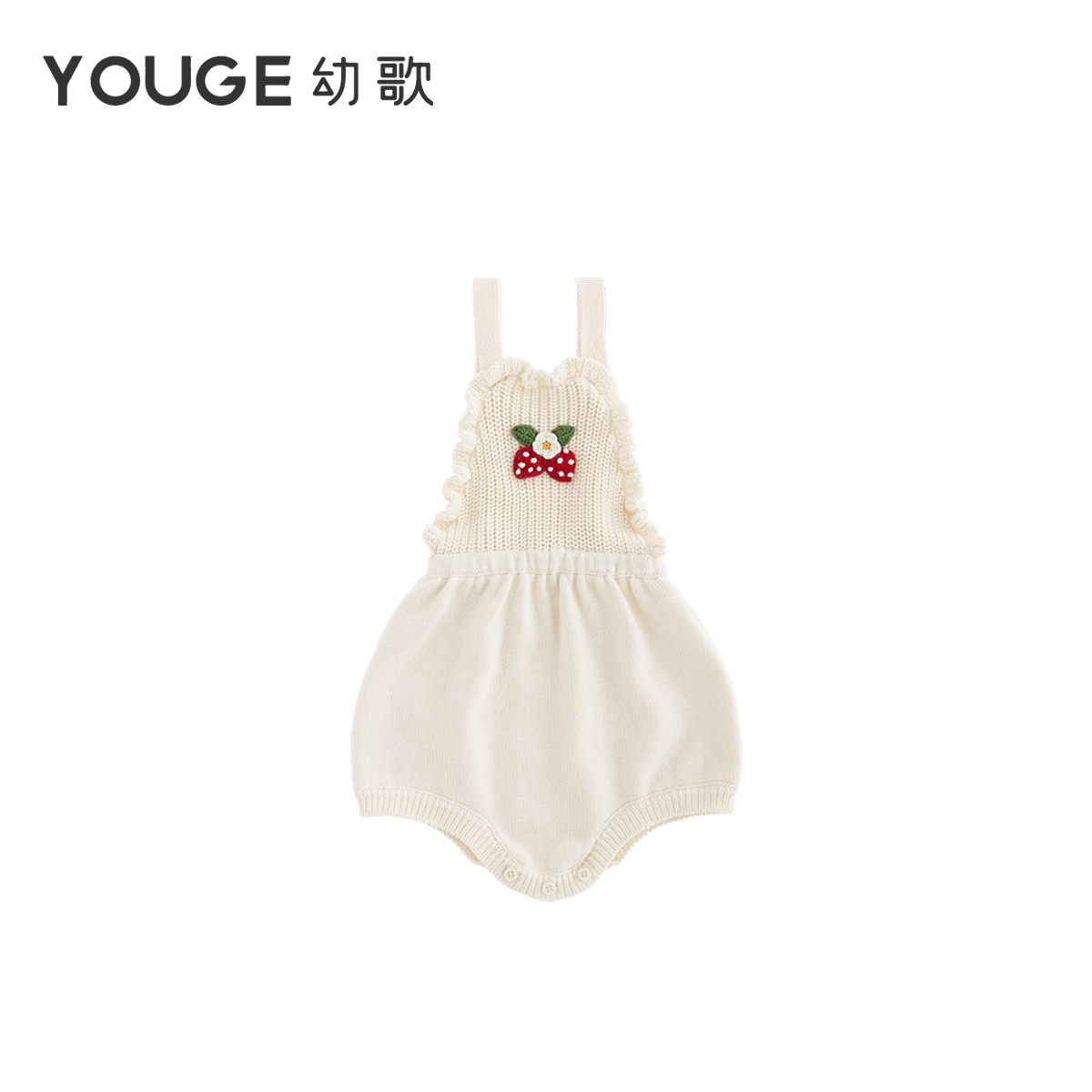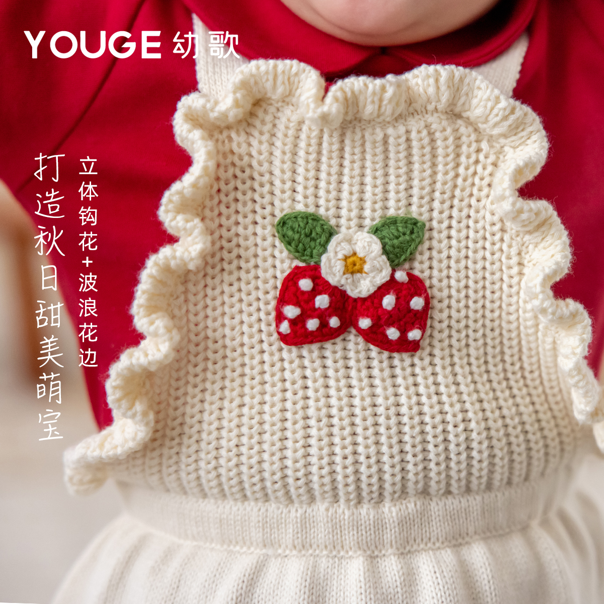 YOUGE幼歌 婴幼儿田园手工草莓波浪花边绣花毛衣柔软亲肤舒适爬服