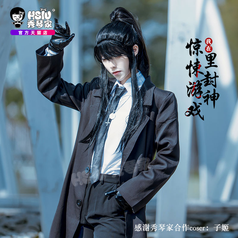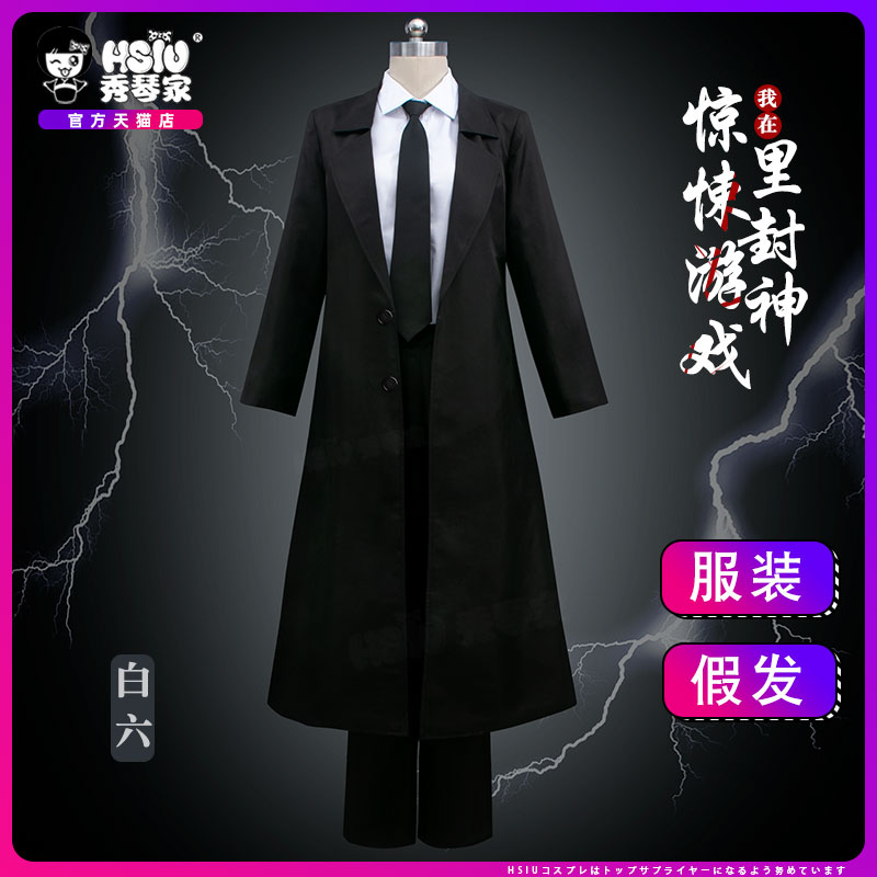 全套 秀琴家 我在惊悚游戏里封神cos服装 白柳 黑色风衣 白六cos服