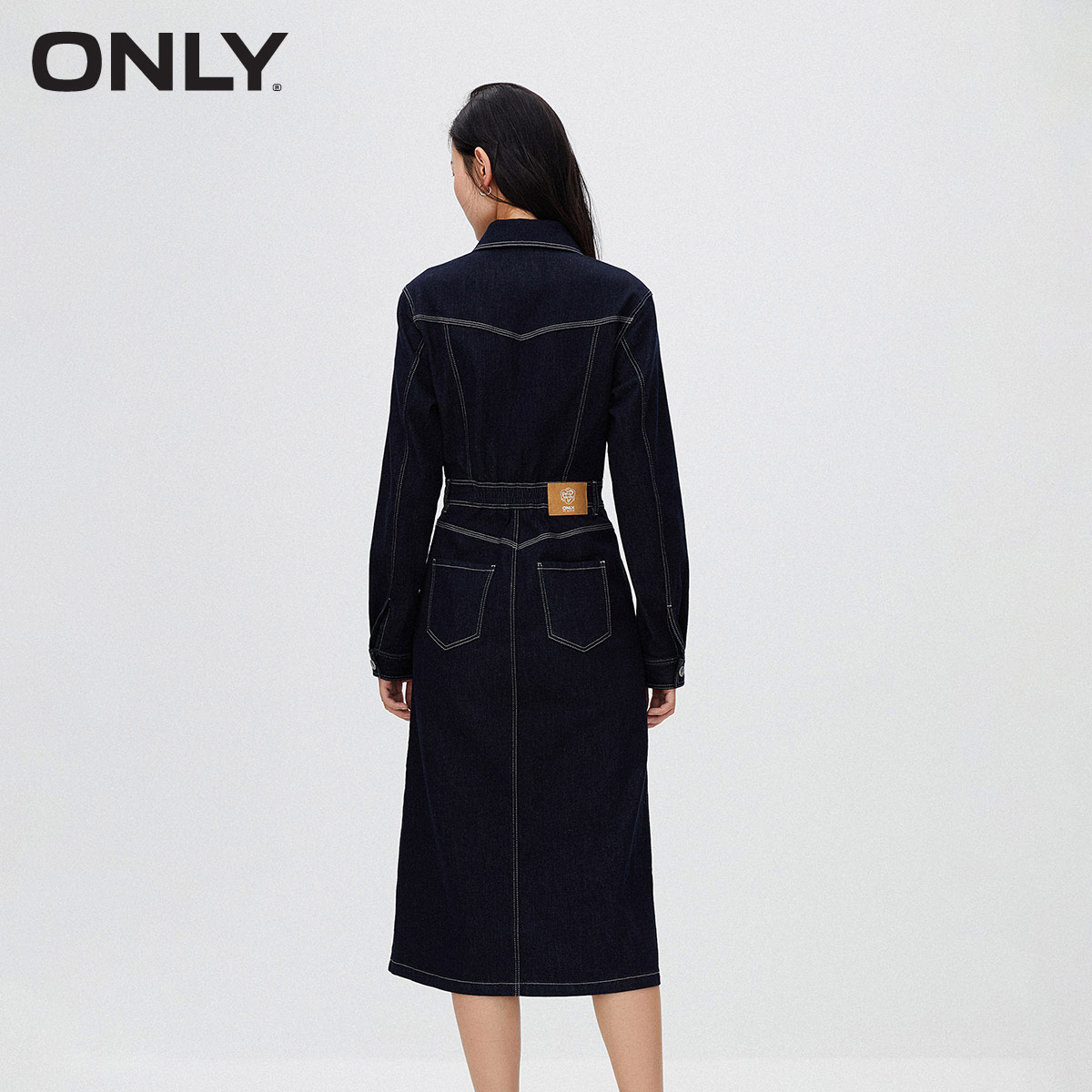 牛仔连衣裙女 气质原色牛仔立体剪裁A字收腰长袖 ONLY2025秋季 新款