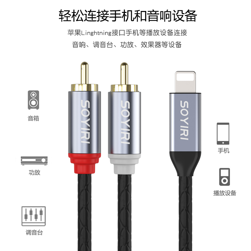 SOYIRI 苹果Lightning转双莲花rca红白手机平板接音箱音响功放调音台音频转接线 适用苹果转双莲花音频转接线