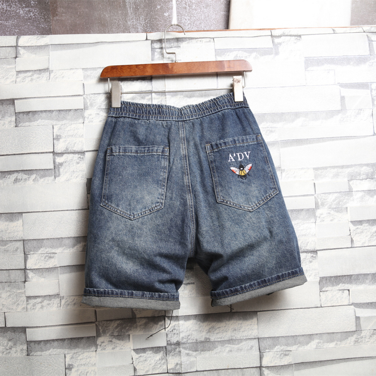 宽松运动外穿五分裤 夏季 男潮流 男松紧腰潮牌直筒牛仔裤 休闲短裤