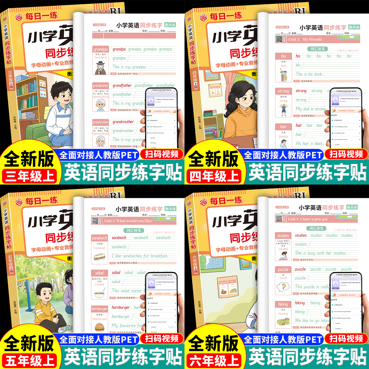 全新正版 小学生专用同步练字帖1一2二3三4四5五6六年级上册下配套语文英语衡水体人教同步字帖每日一练字帖描红写字笔顺动画正楷书