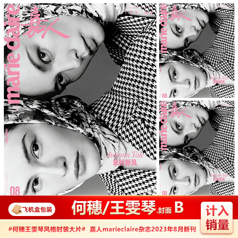 嘉人marie 大片 八月 时装 何穗王雯琴风格 claire杂志2023年8月刊 计入销量 王雯琴双人AB封面可选 何穗 嘉人 现货