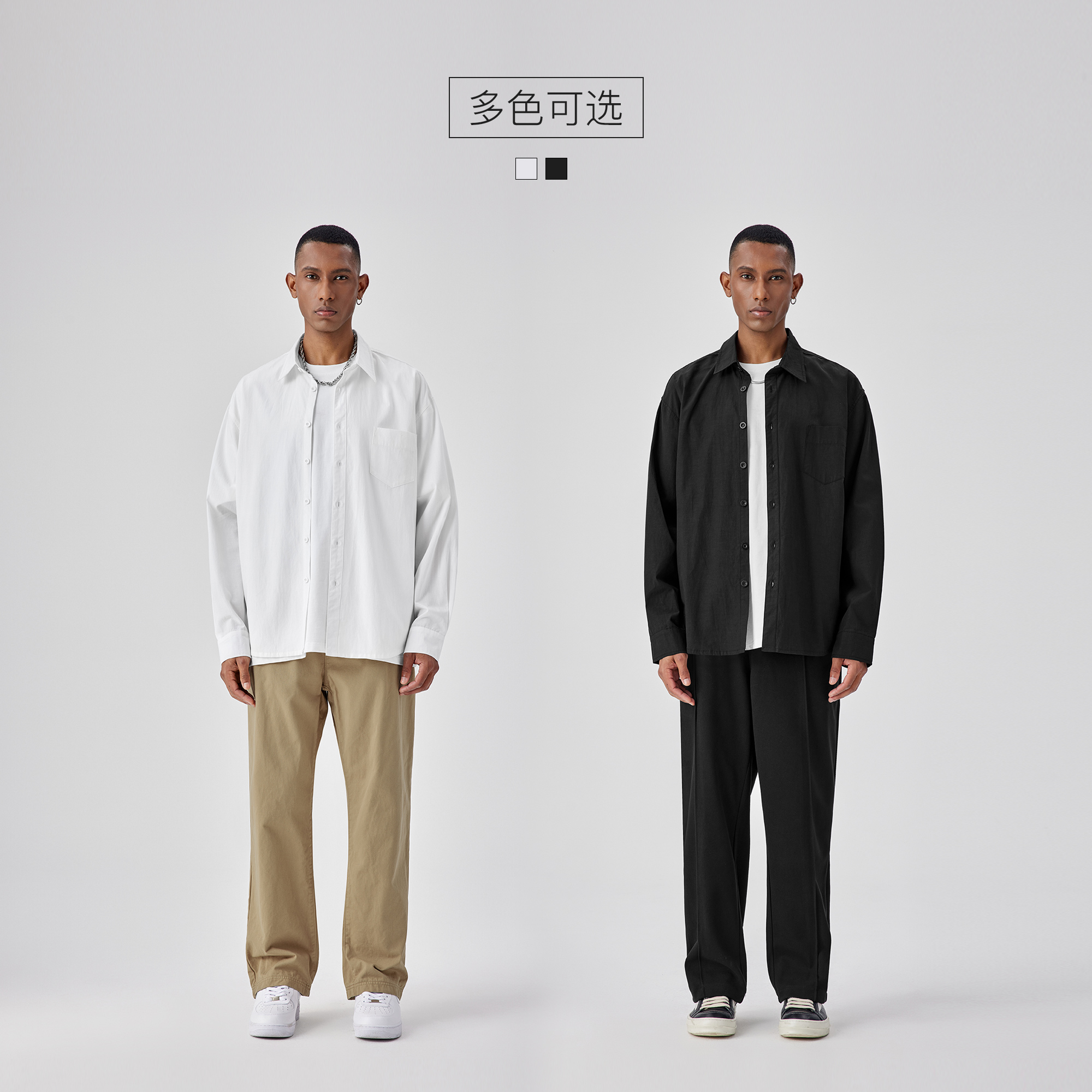 男宽松休闲梭织垂感潮牌上衣 衬衫 BODYDREAM美式 复古长袖