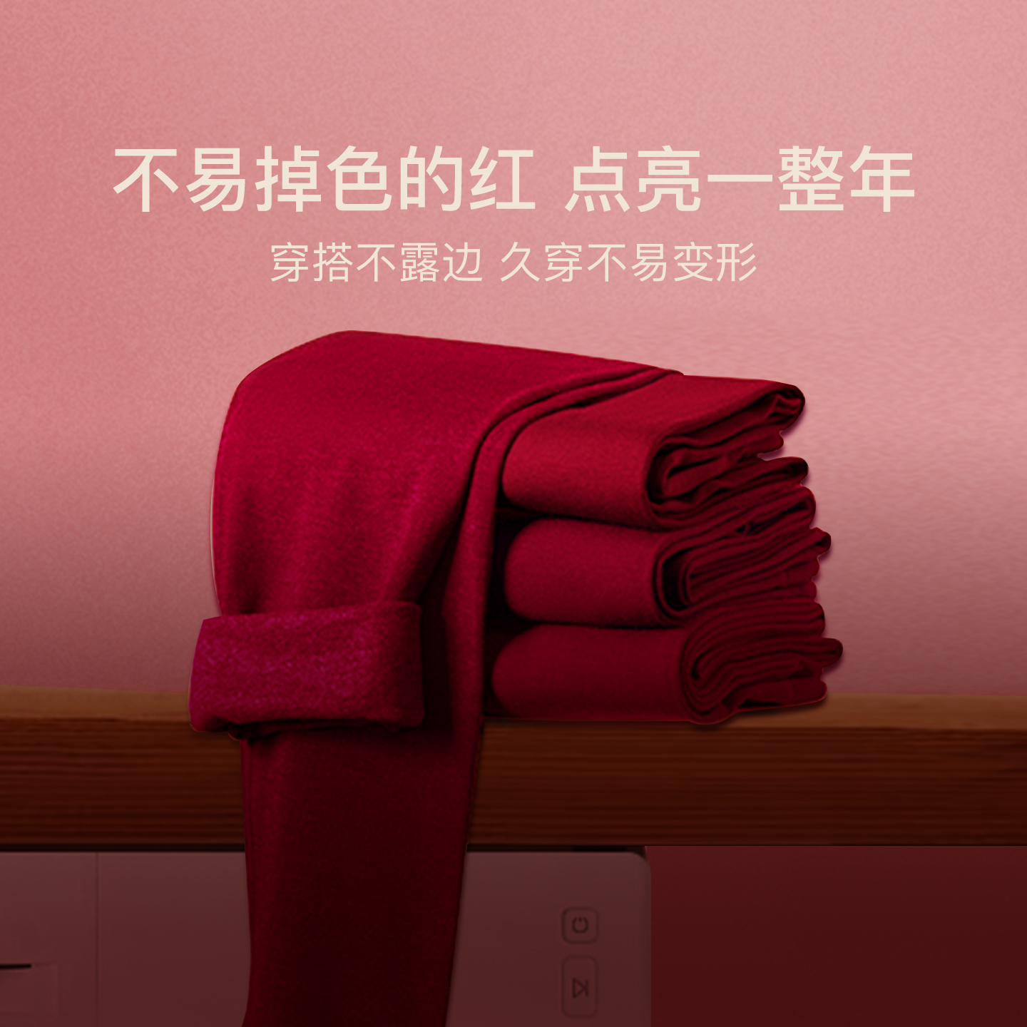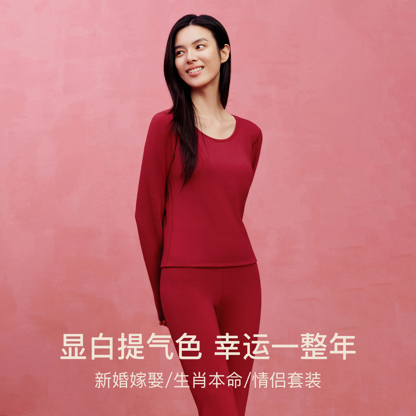 ubras本命年红色加绒加厚羊毛保暖内衣女套装 秋衣男 新年开运秋裤