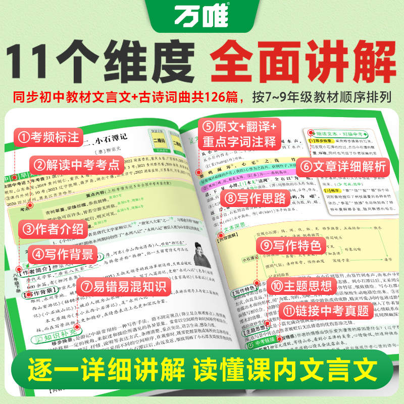 2025万唯中考初中文言文完全解读一本通语文专项训练教材初一初二初三八九七年级必背古诗词和文言文全解全练阅读理解万维中考名著