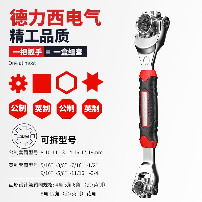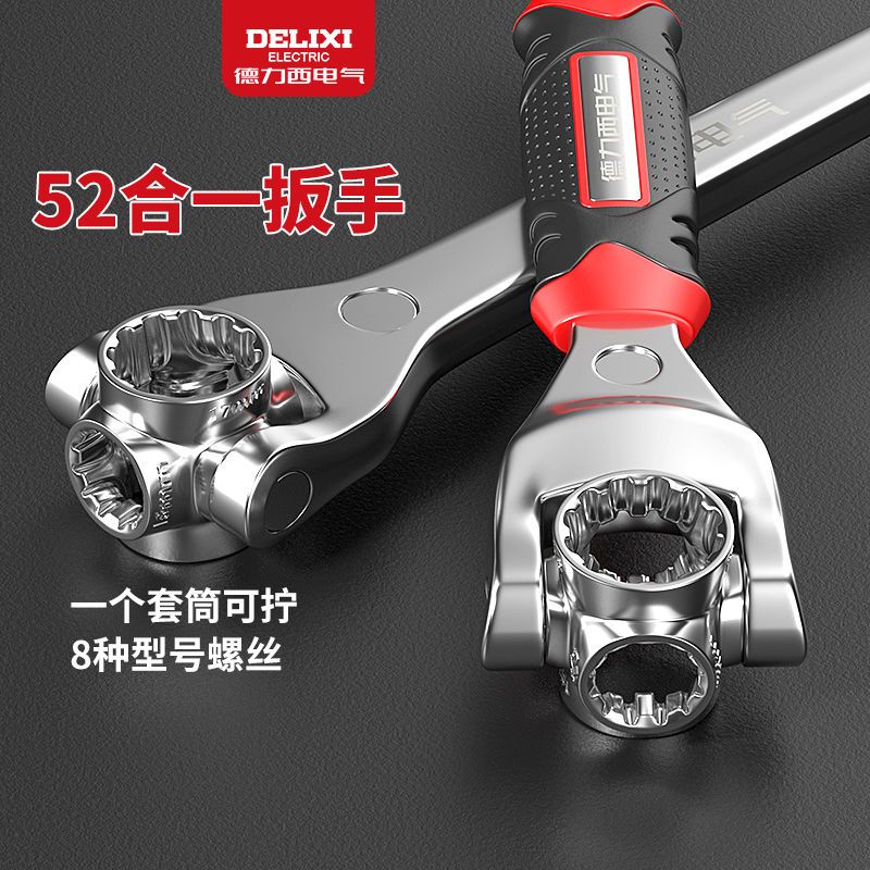 德力西电气多功能套筒扳手套装 52合一10号17mm八合一万用扳手工具
