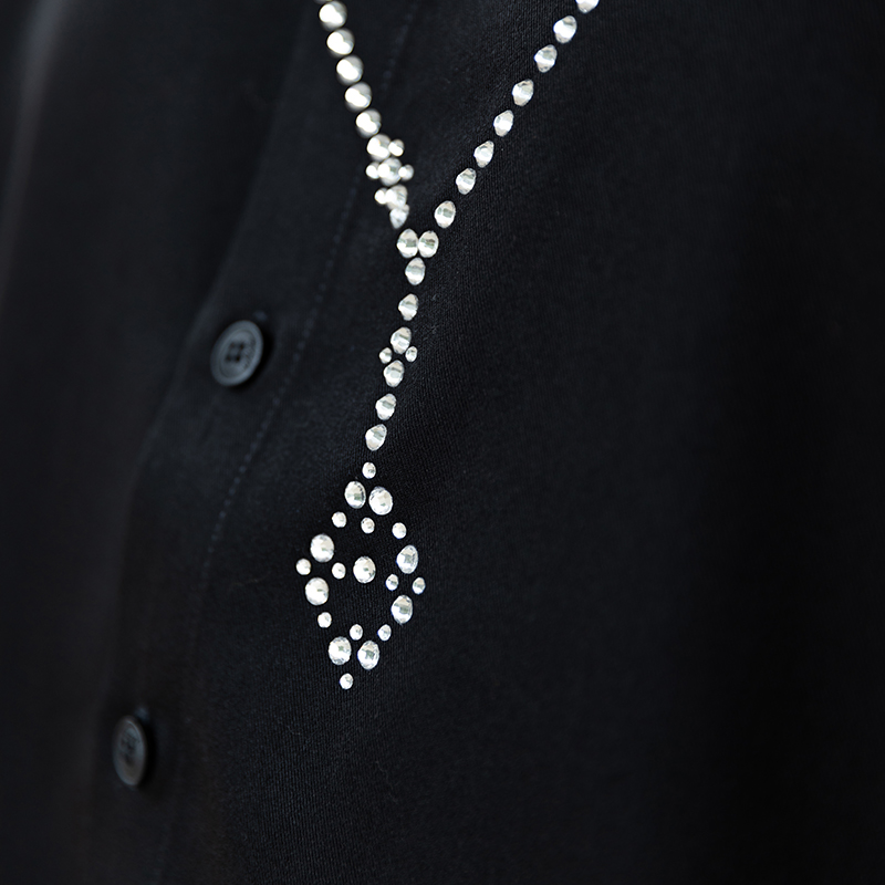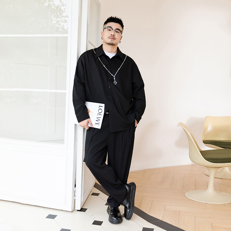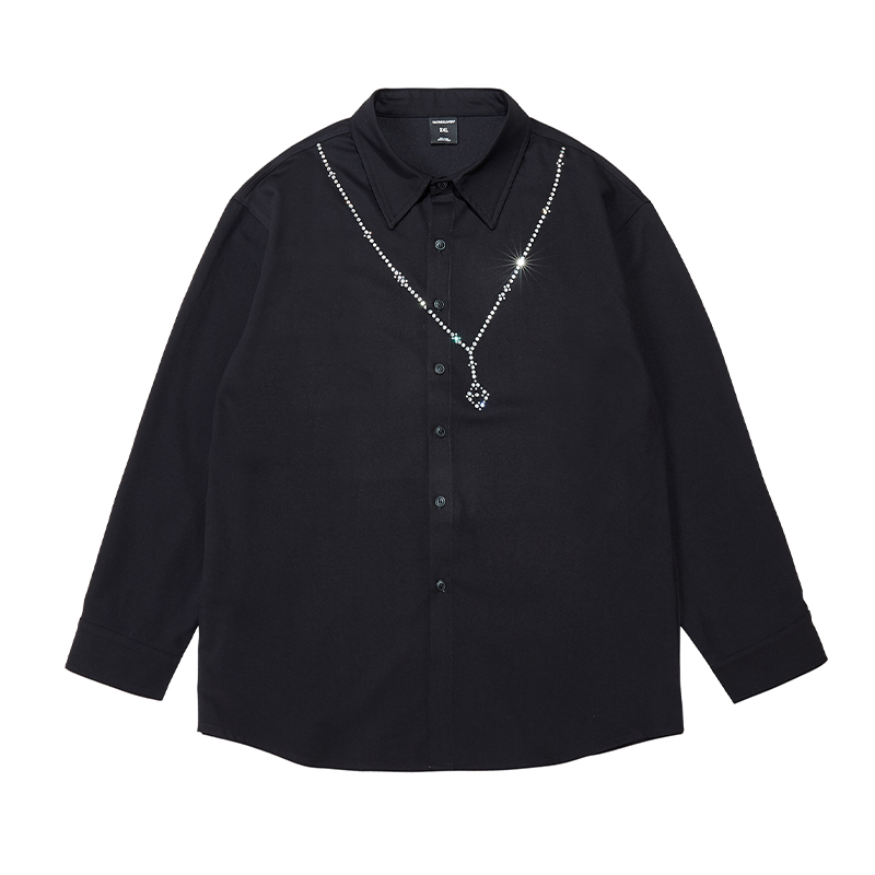 抗皱宽松轻商务贴钻设计衬衣8504 男长袖 韦恩泽维尔秋大码 黑色衬衫