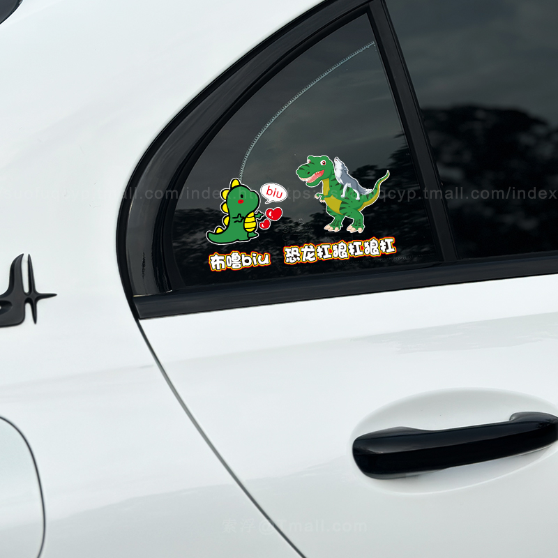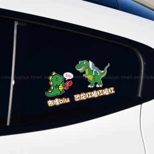 布噜biu恐龙扛狼搞笑 饰贴纸创意趣味贴摩托车电动车防水贴 汽车装