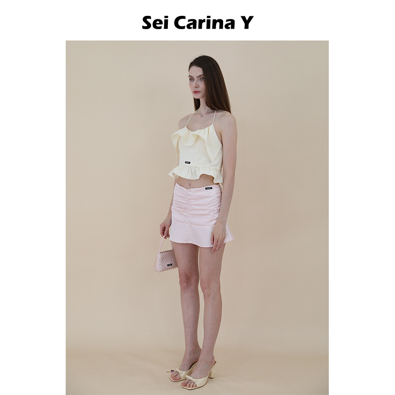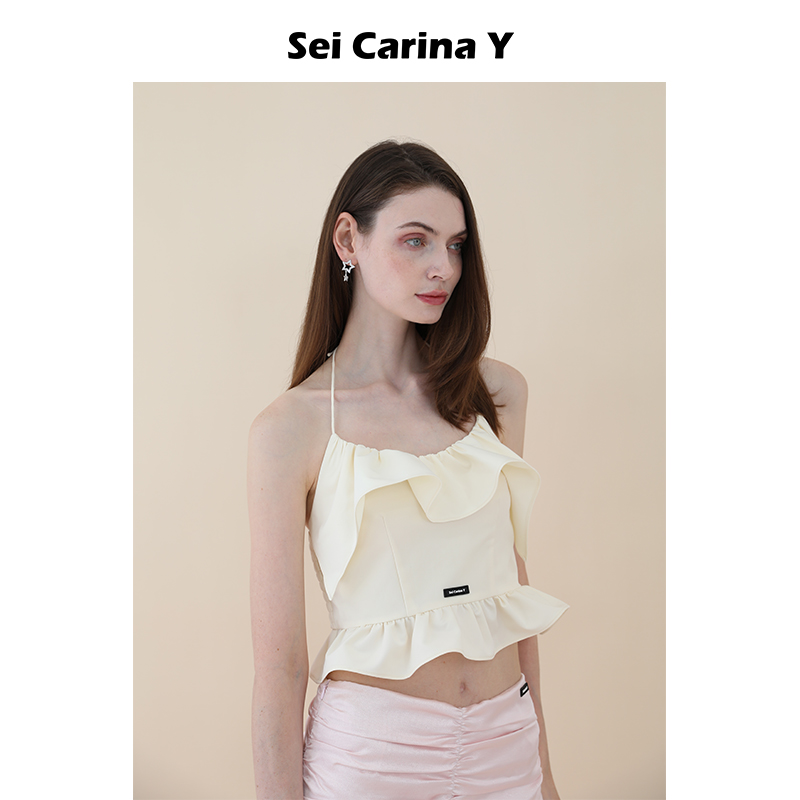 吊带背心女2025新款 上衣 带胸垫内搭外穿美背夏小褶皱黄色打底无袖