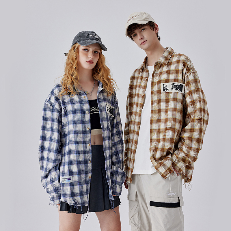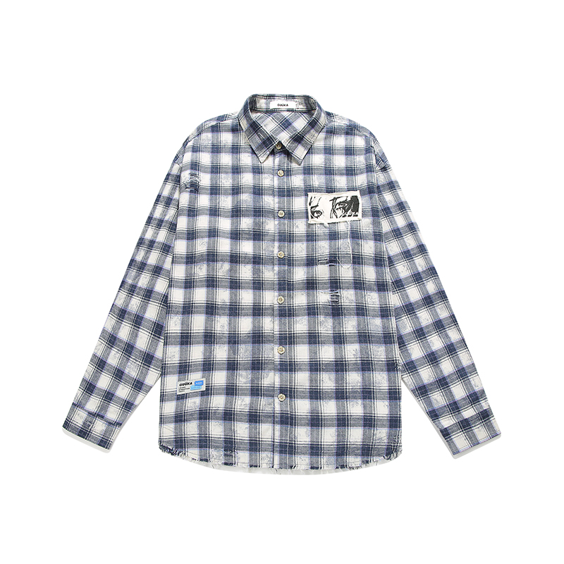 李宏毅同款 男新款 青少年复古衬衣外套宽松 衬衫 GUUKA潮牌格子长袖